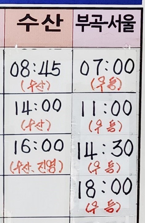 부곡시외버스터미널 시간표