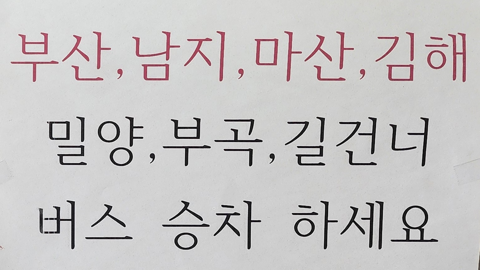 영산 출발 부산, 남지, 마산, 김해, 밀양, 부곡 승차장소 길 건너