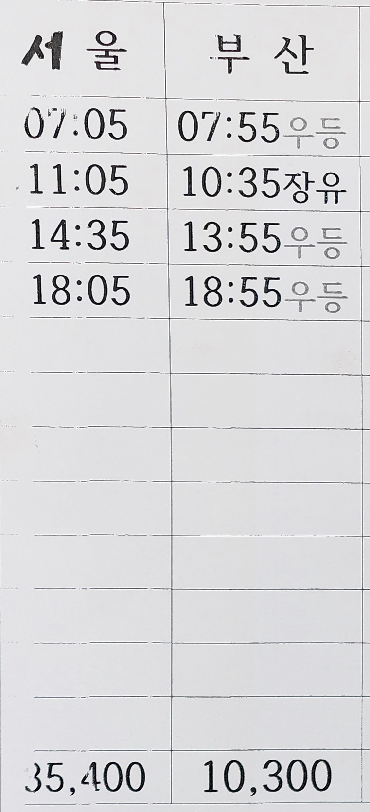 영산 출발 서울, 부산 방면.