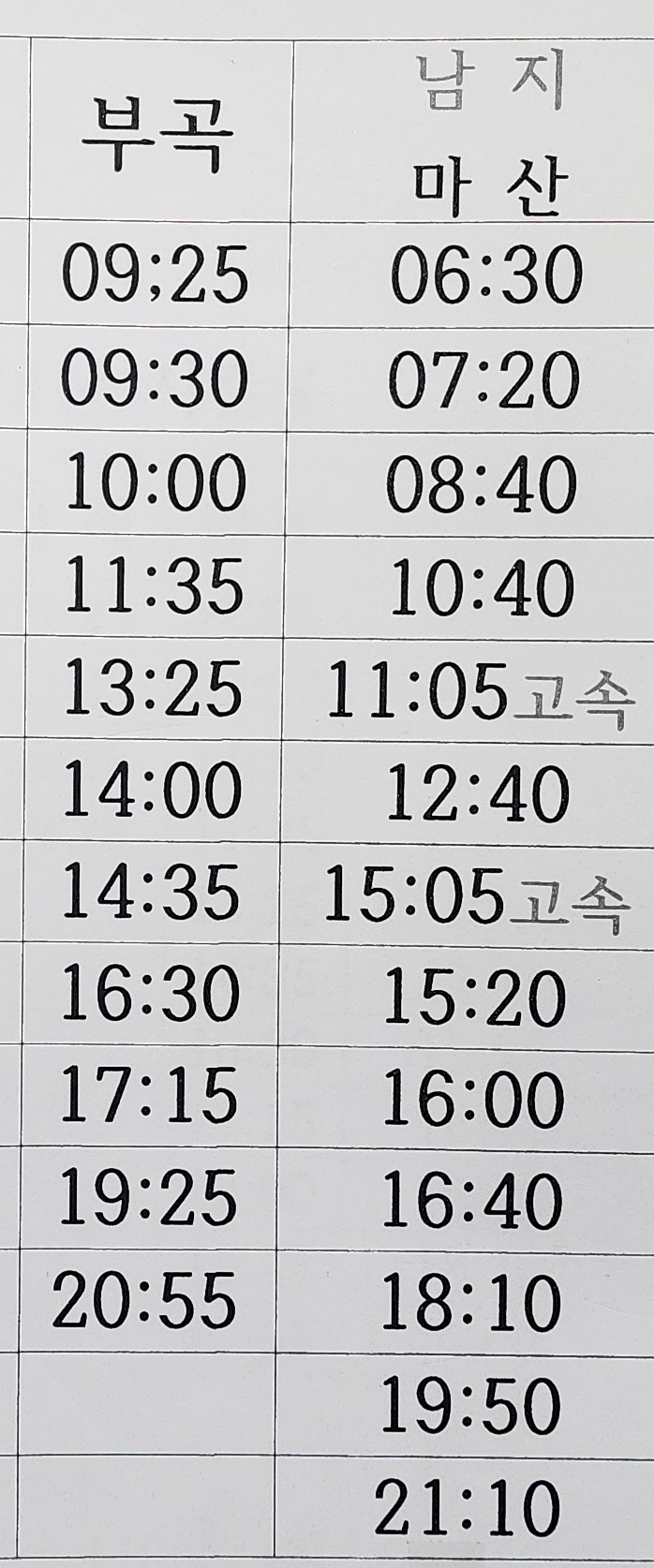 일상이야기/시외버스시간표