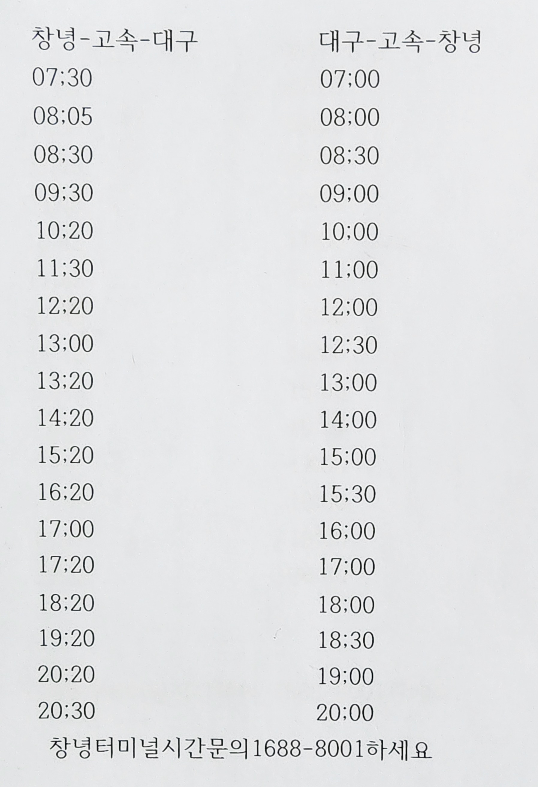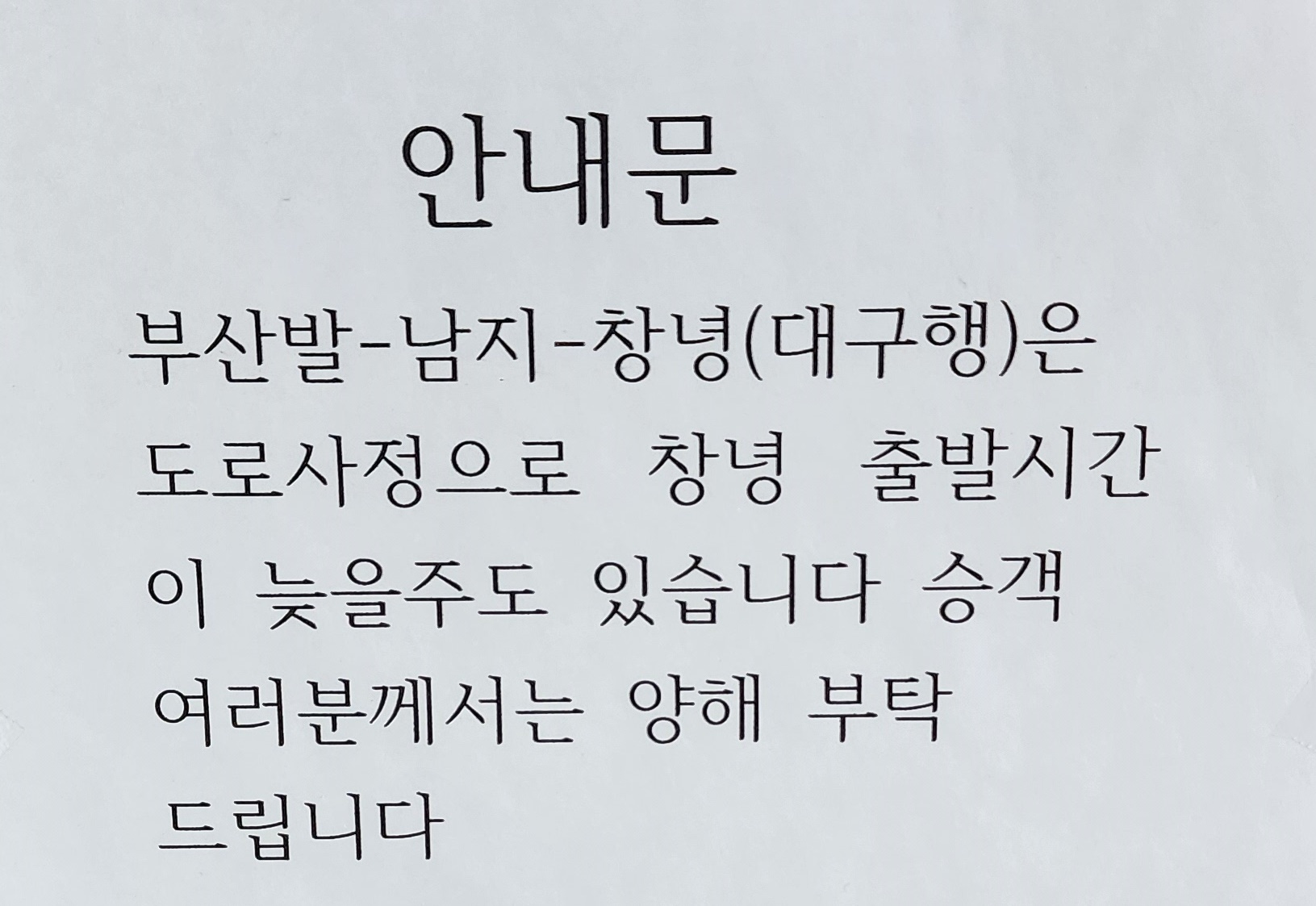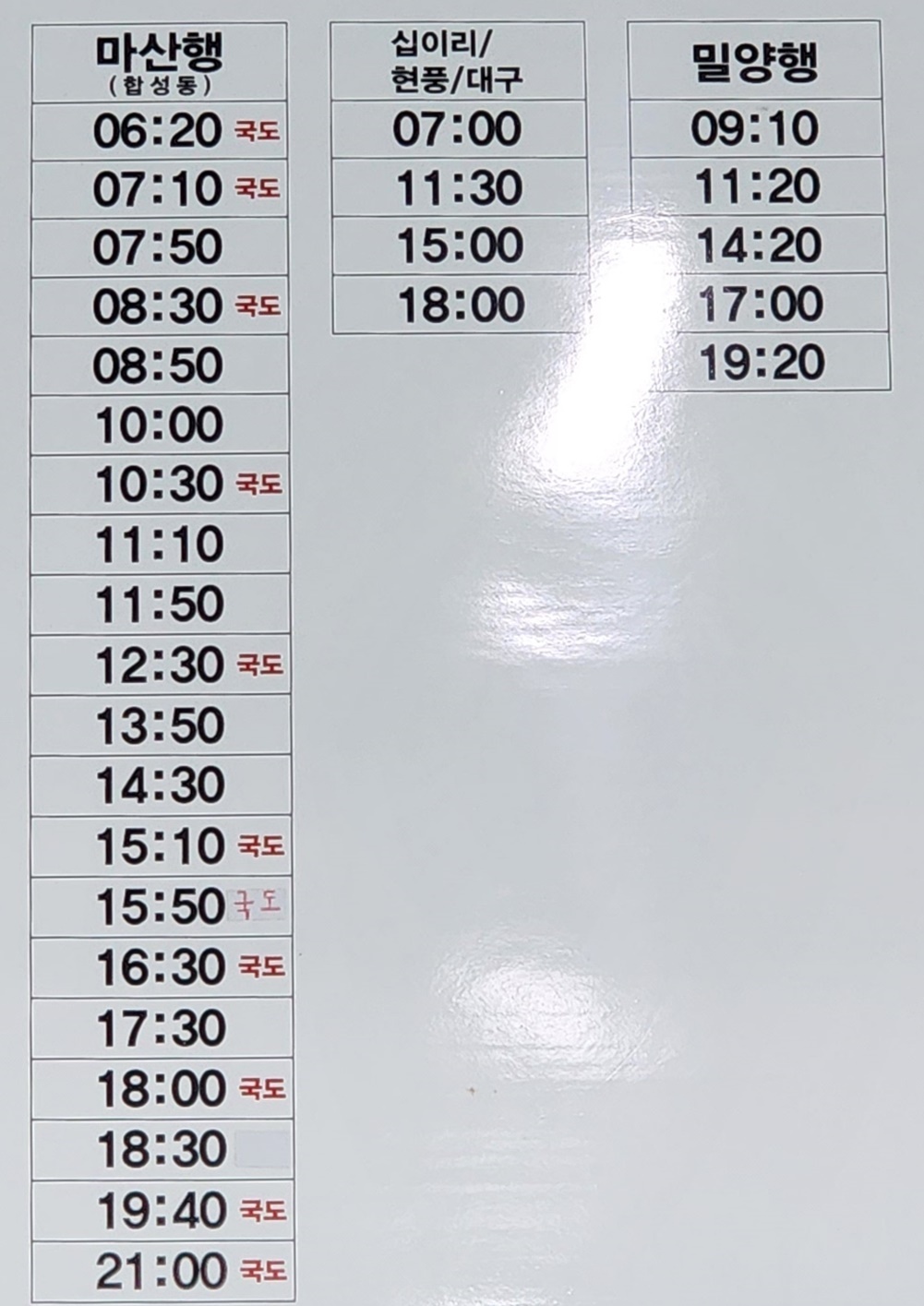 창녕 출발 마산, 합성동, 십이라, 현풍, 대구, 밀양 방면.