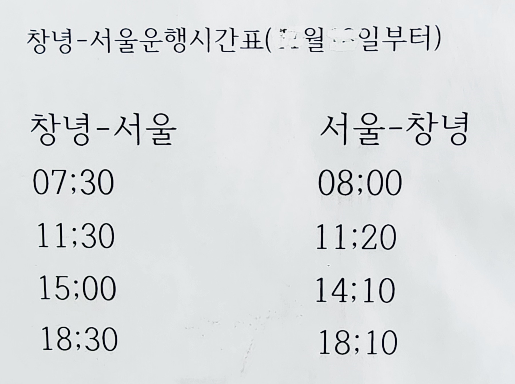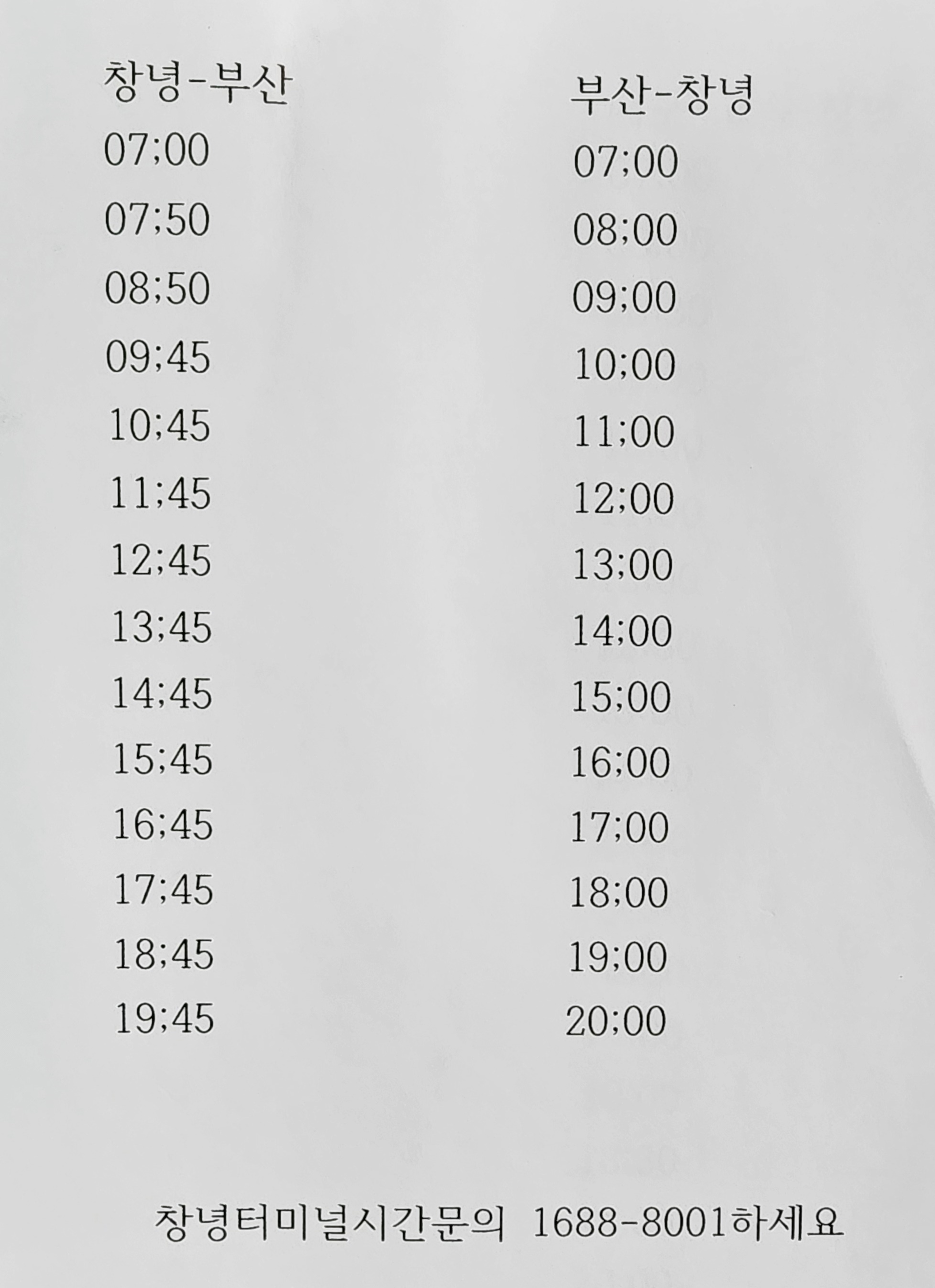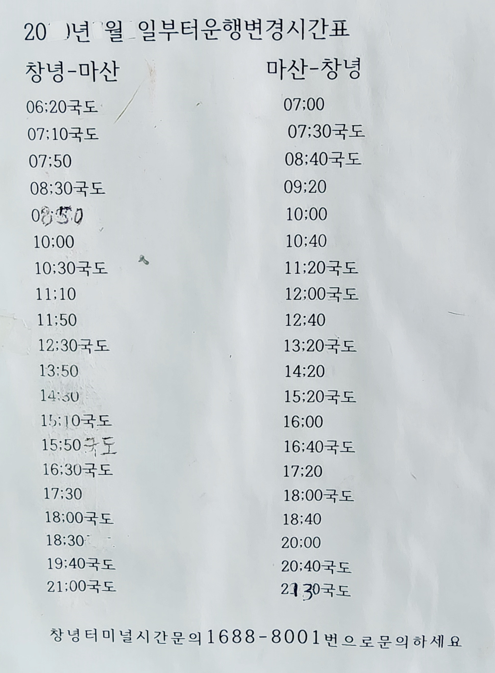 창녕 출발 마산, 합성동, 십이라, 현풍, 대구, 밀양 방면.
