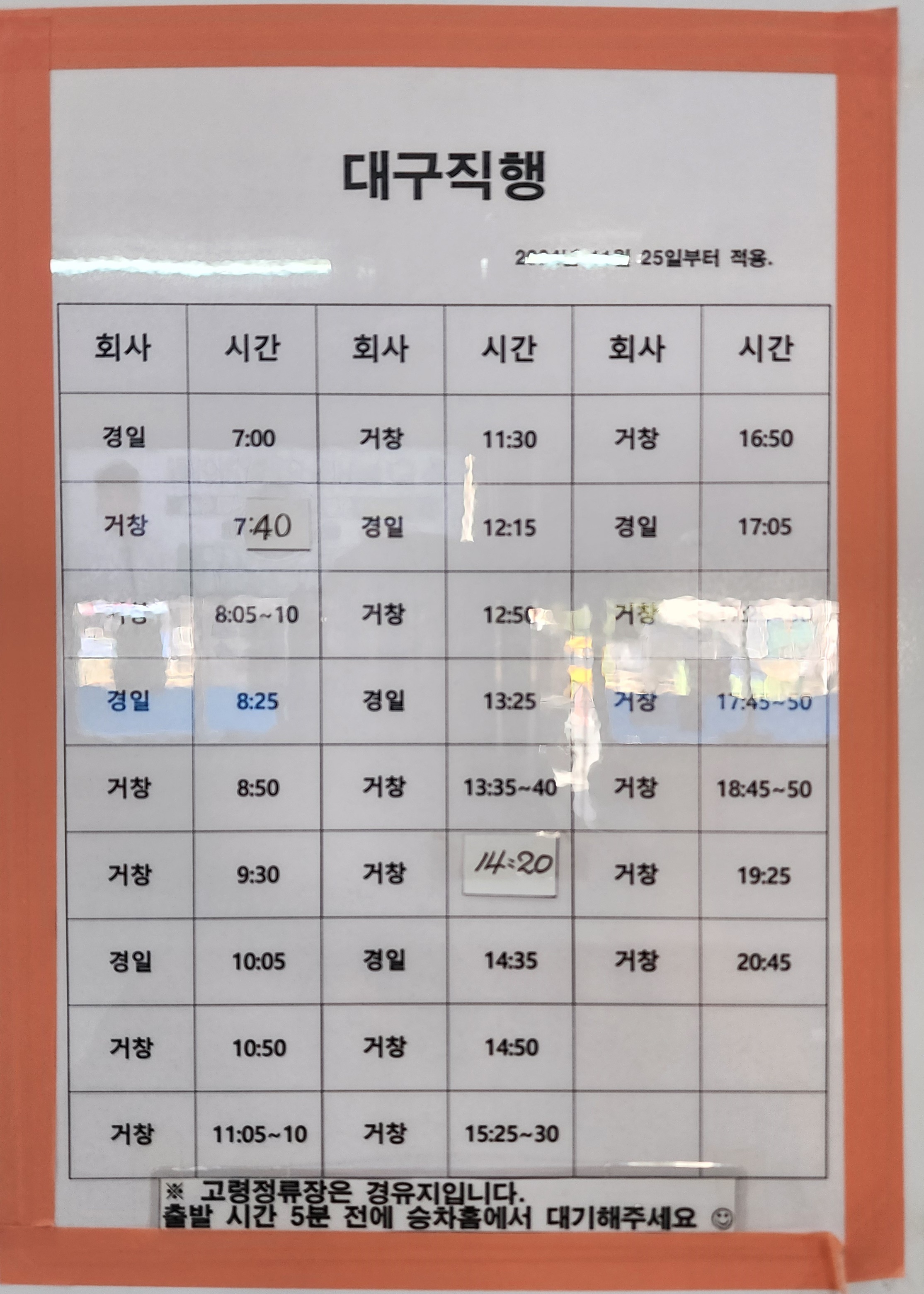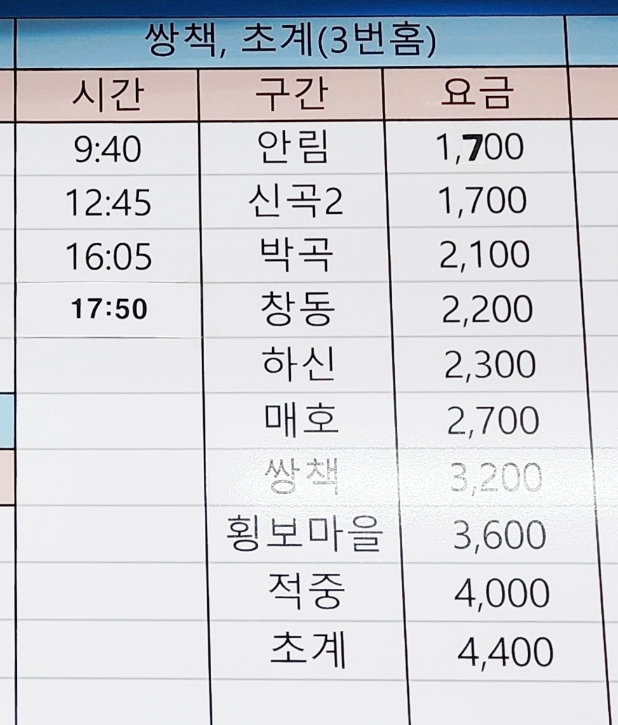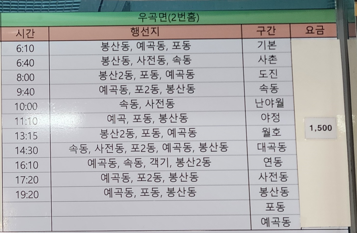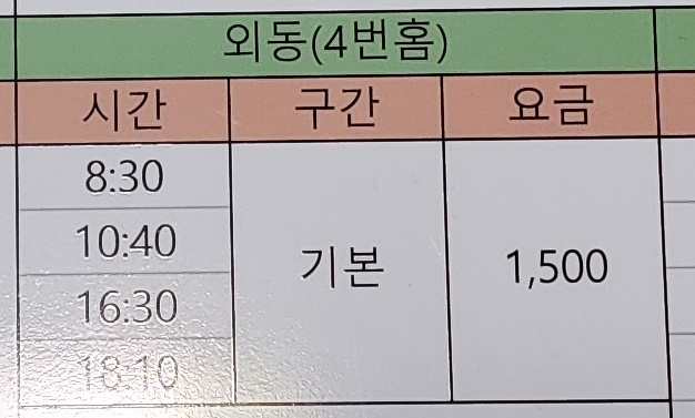 고령군 전 구간 요금과 대구완행 요금이 거리, 구간 상관없이 1,500원 입니다.