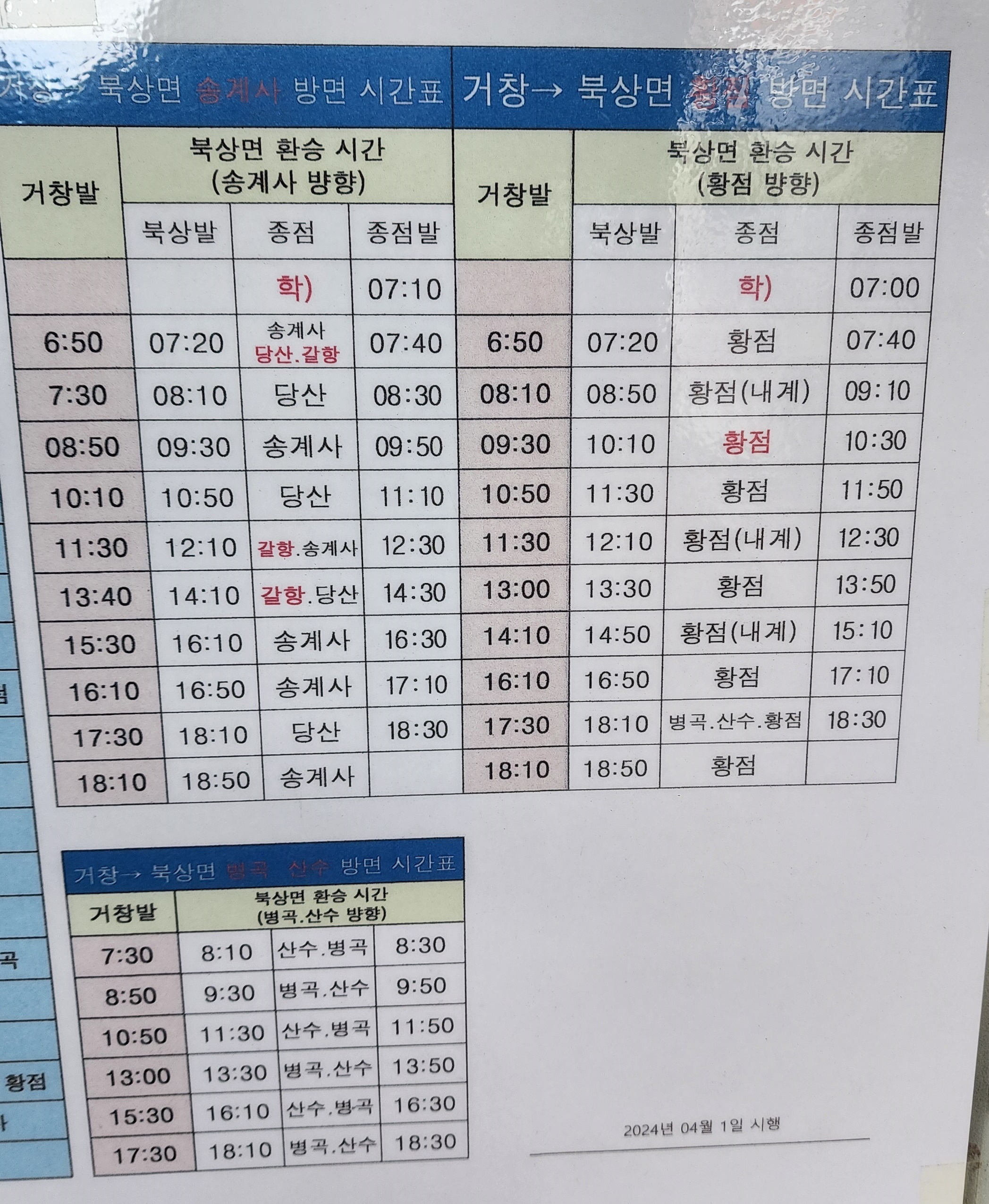 서흥여객 농어촌 버스 시간표.