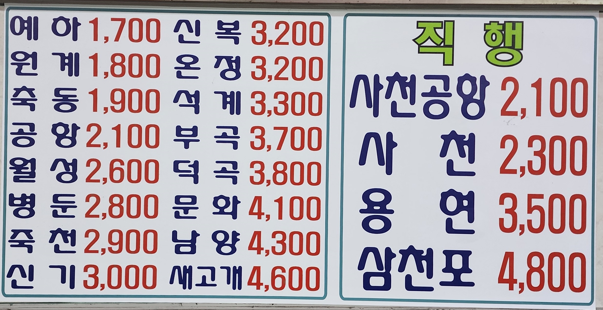 진주 출발 사천, 상리, 고성, 통영, 고현, 장승포,청주 방면.