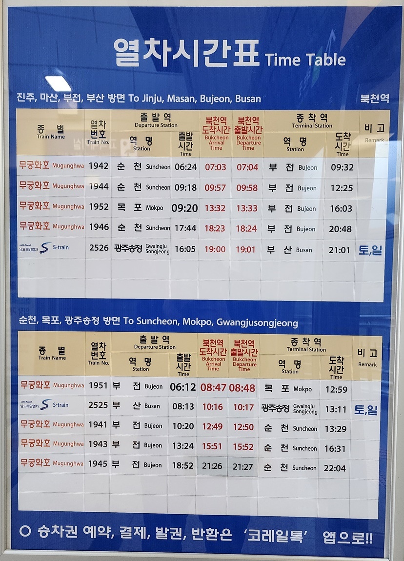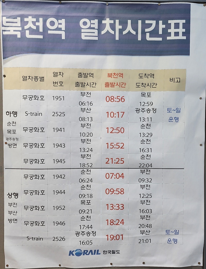 북천역 열차 시간표