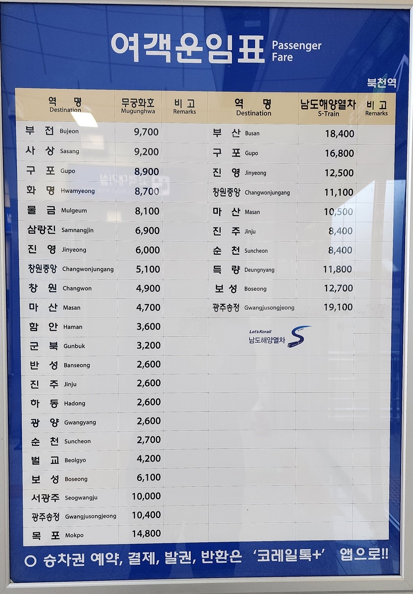 북천역에서는 열차승차권을 판매하지 않습니다.