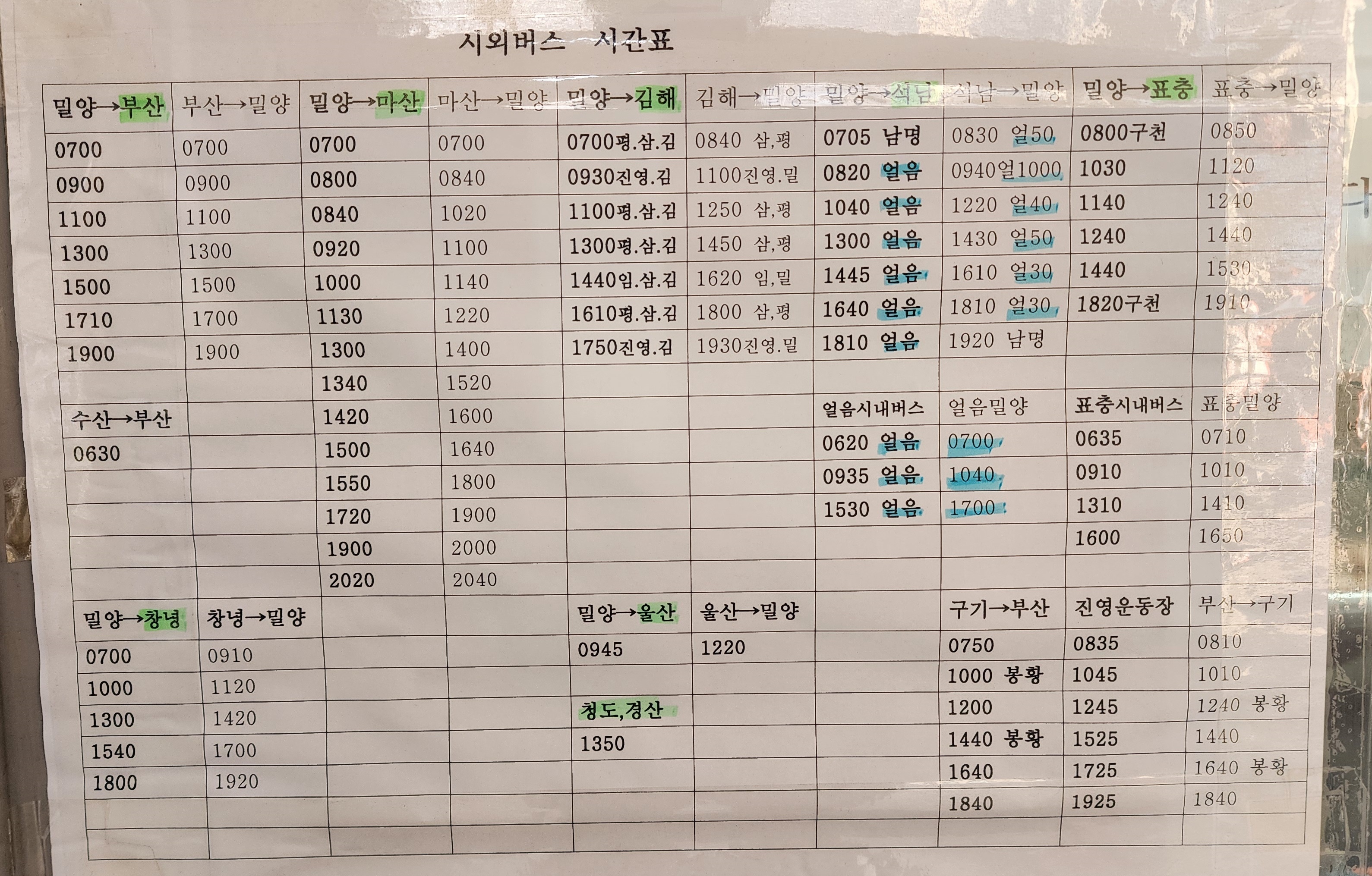 밀양 시외버스 시간표