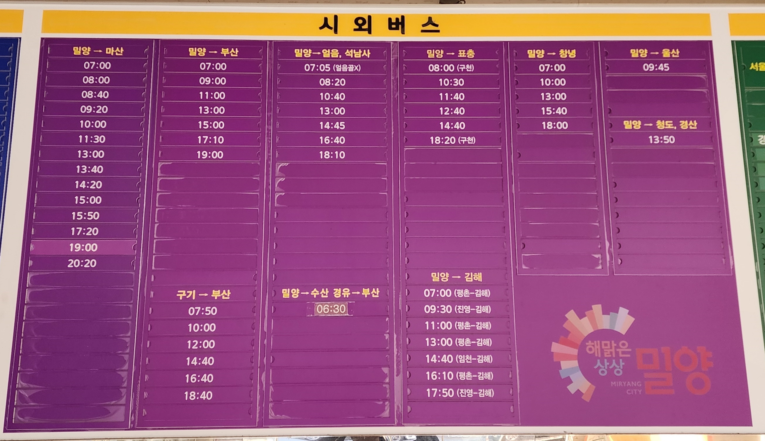 밀양시외버스터미널 시간표