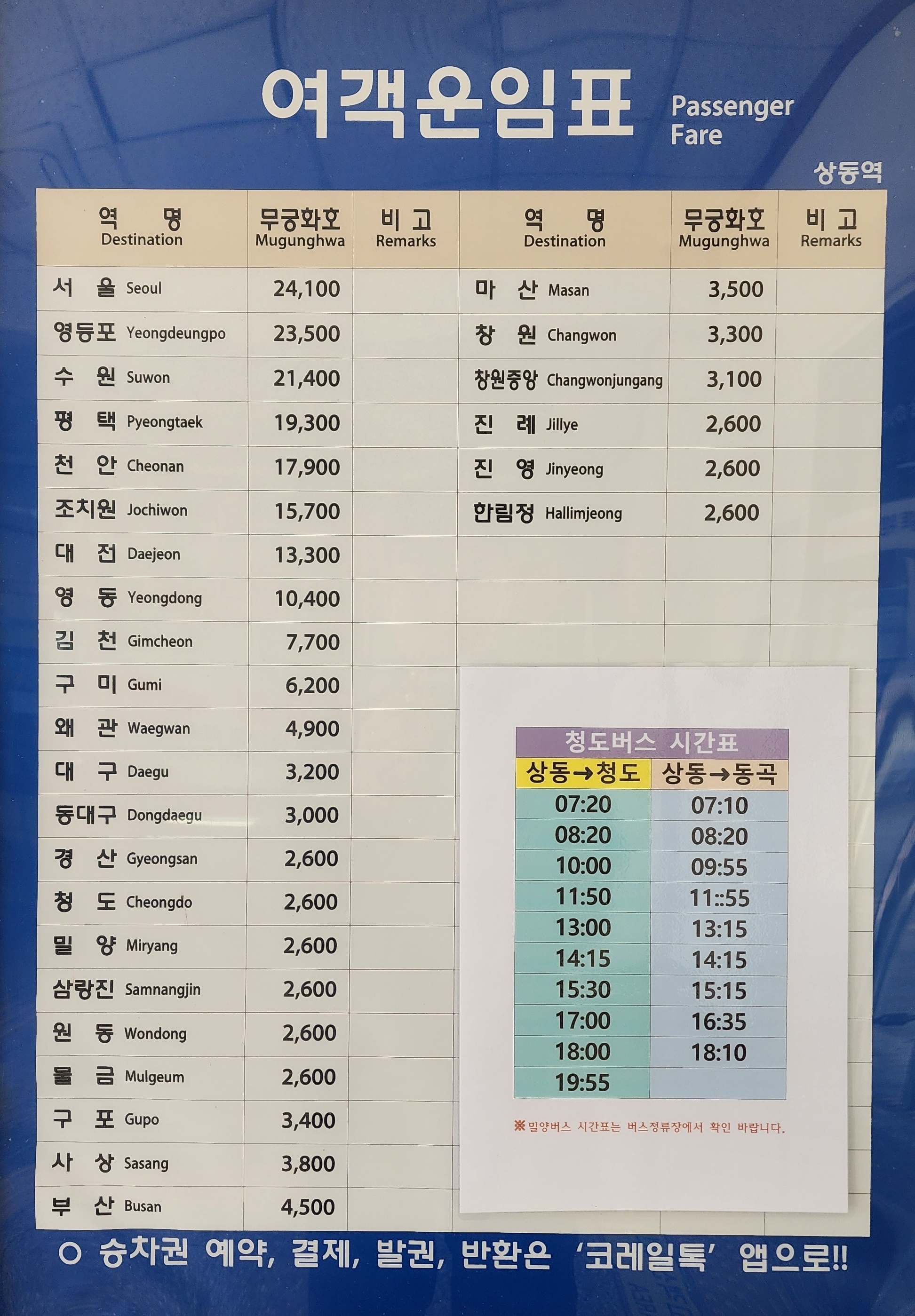 청도 버스시간표