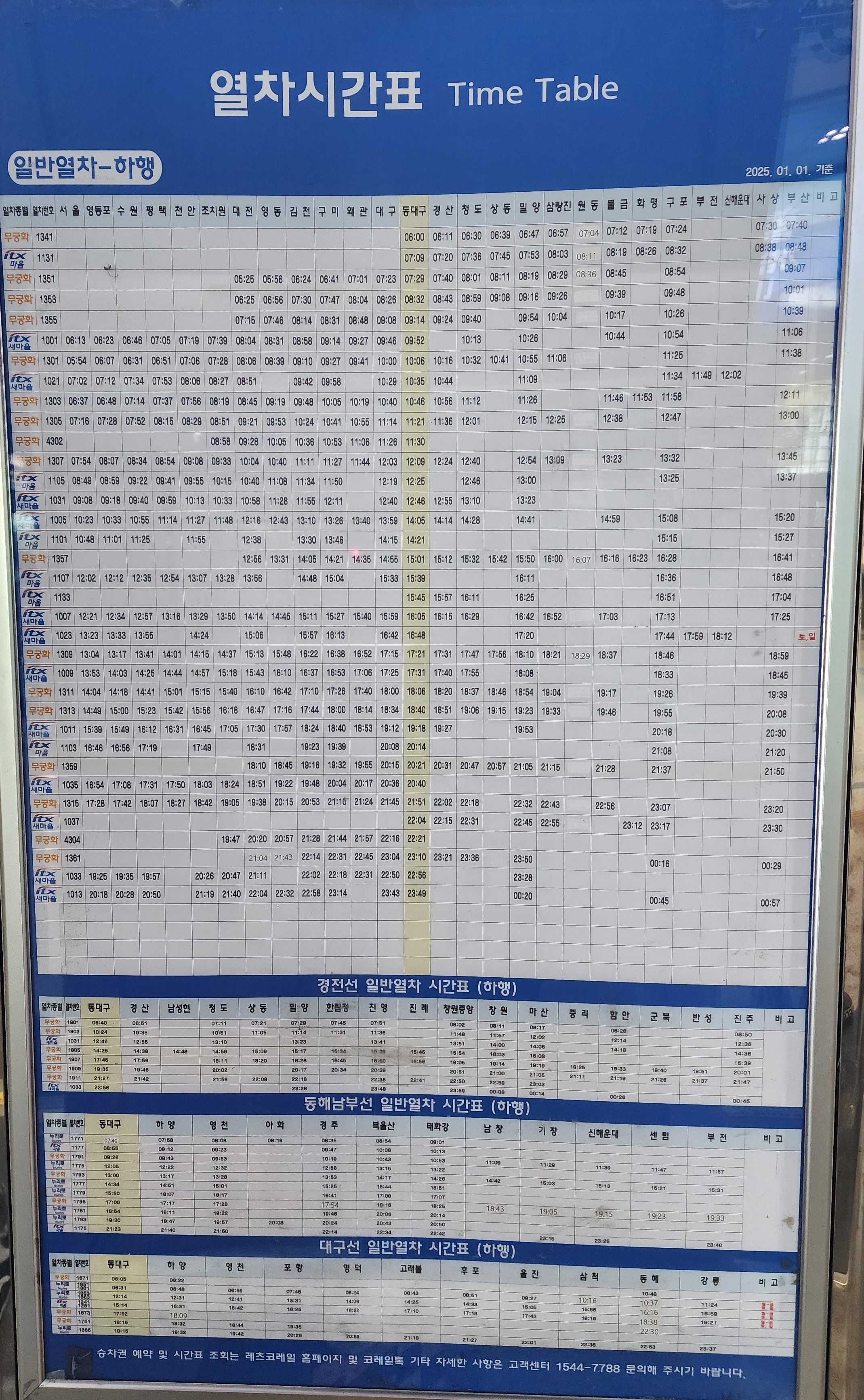 동대구역 일반열차 하행 시간표