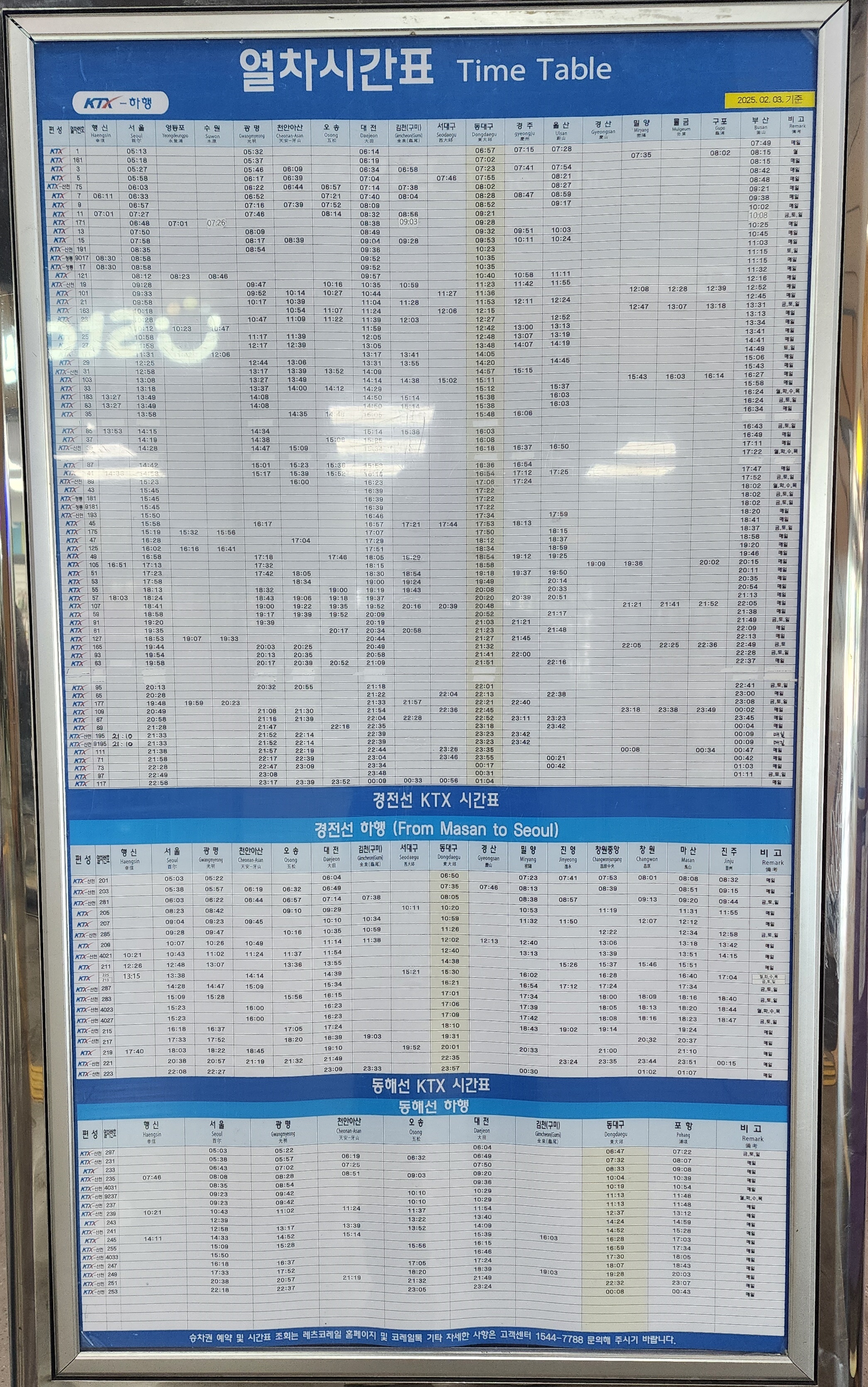 KTX 하행 시간표