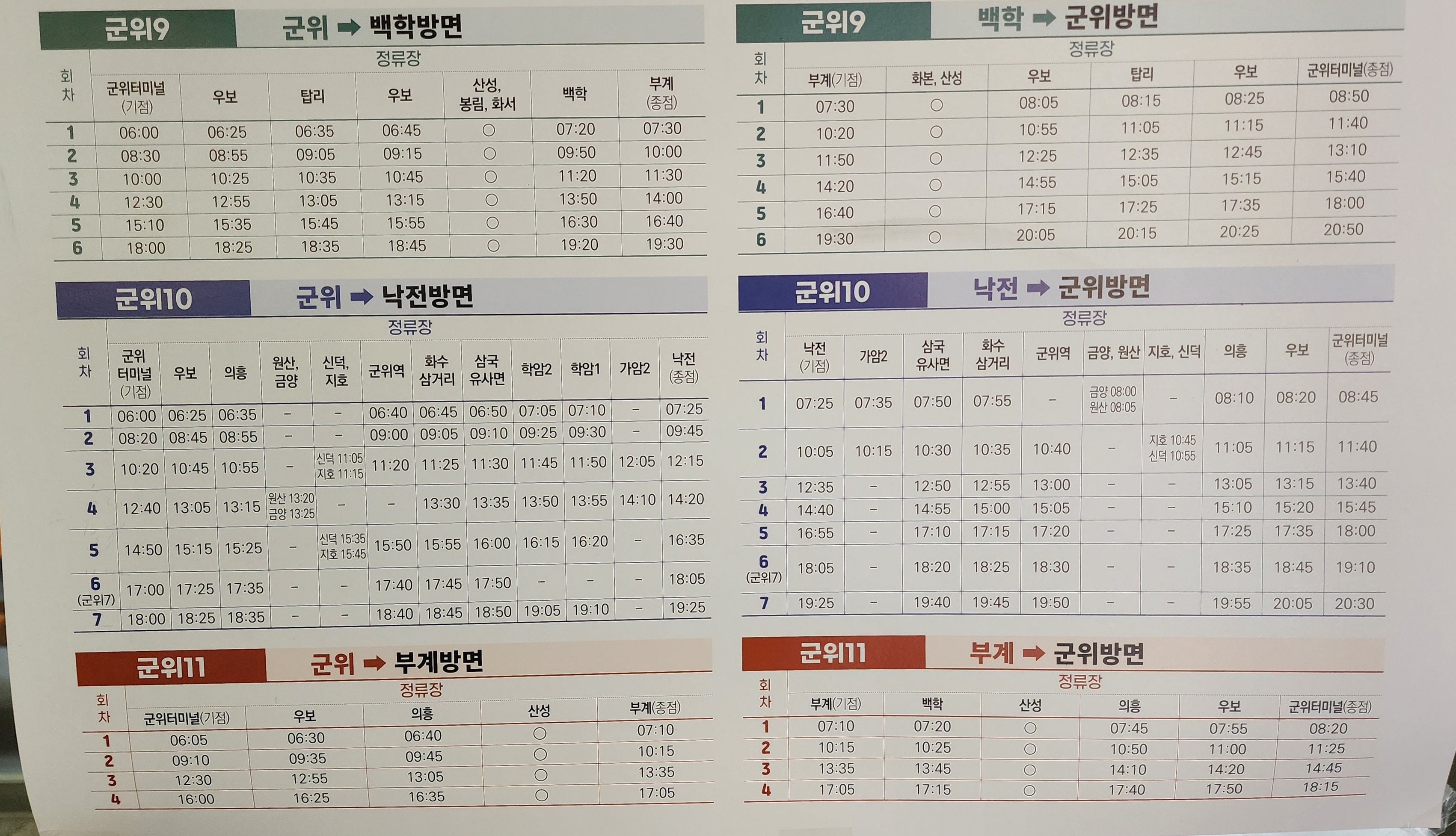 군위시외버스터미널 시간표