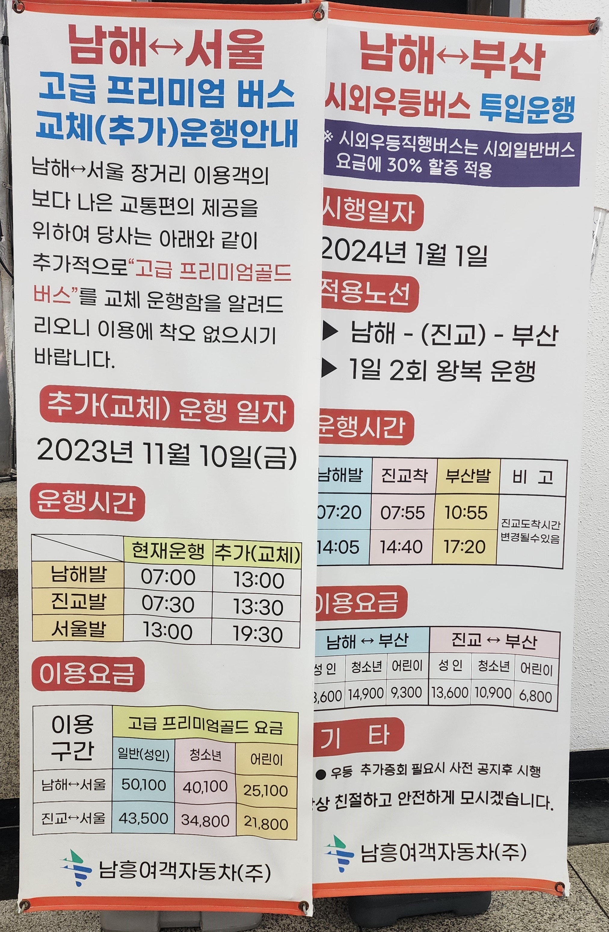 남해~서울, 고급 프리미엄 버스 교체 추가 운행.