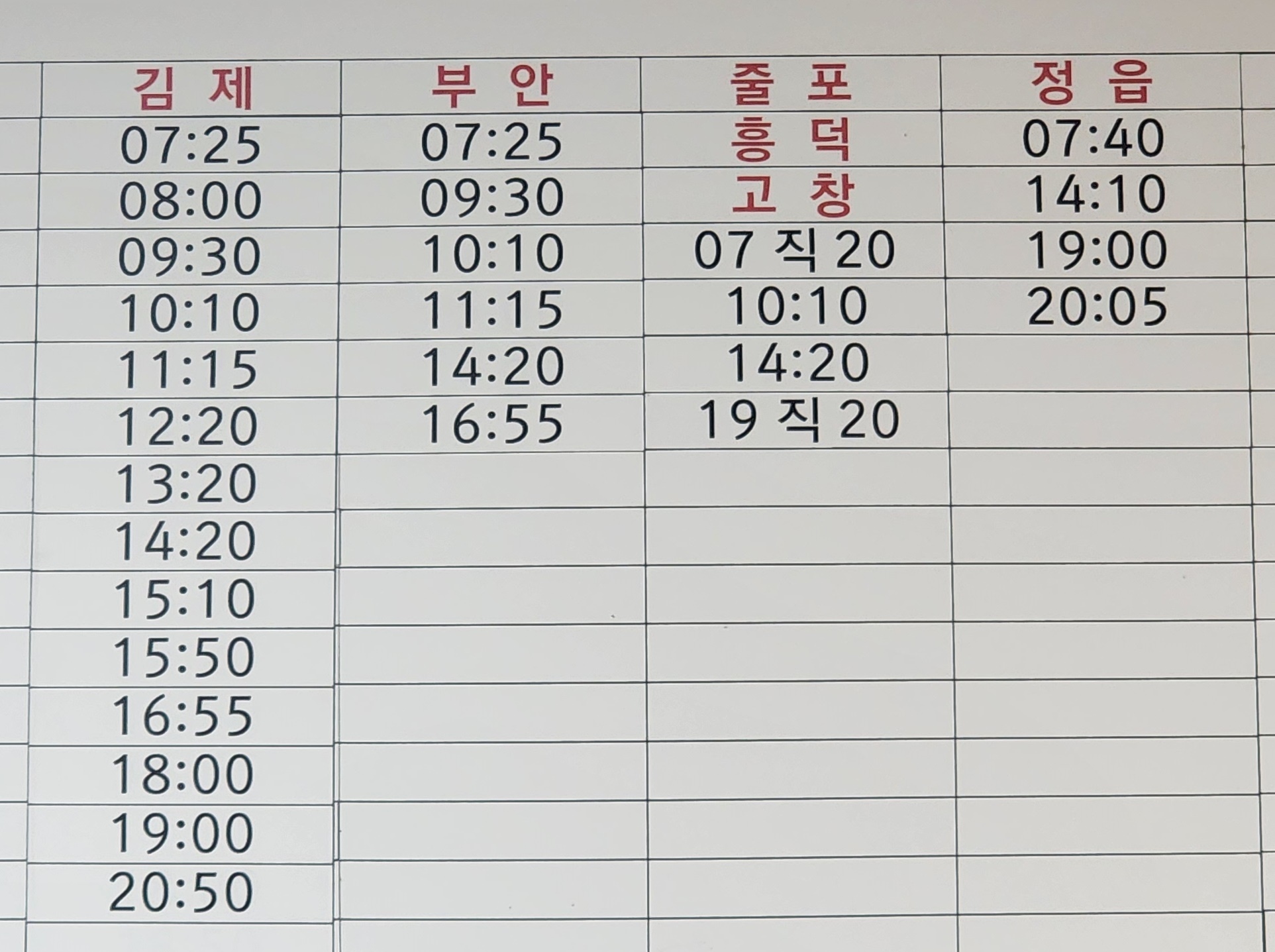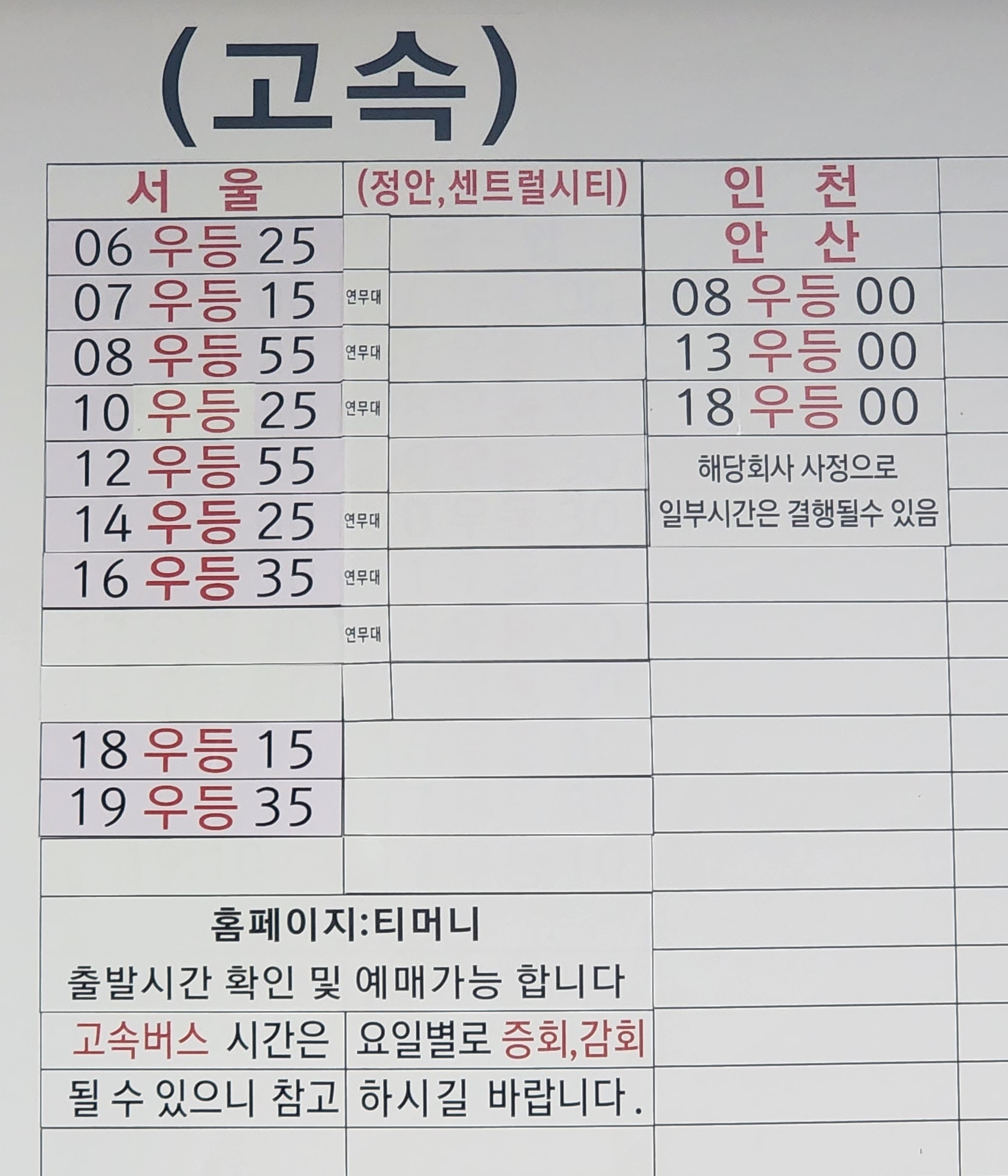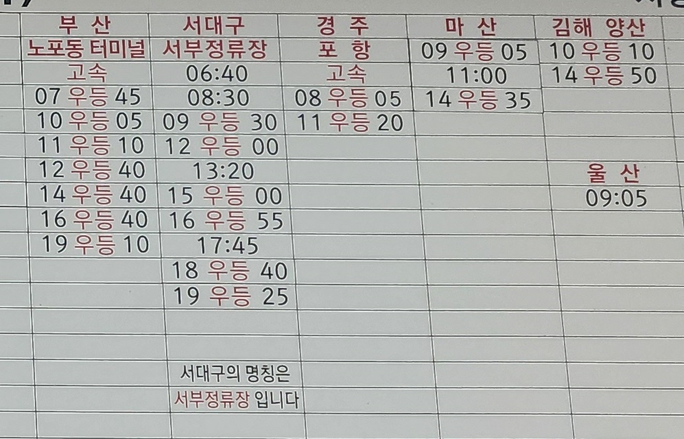 고속버스터미널 시간표