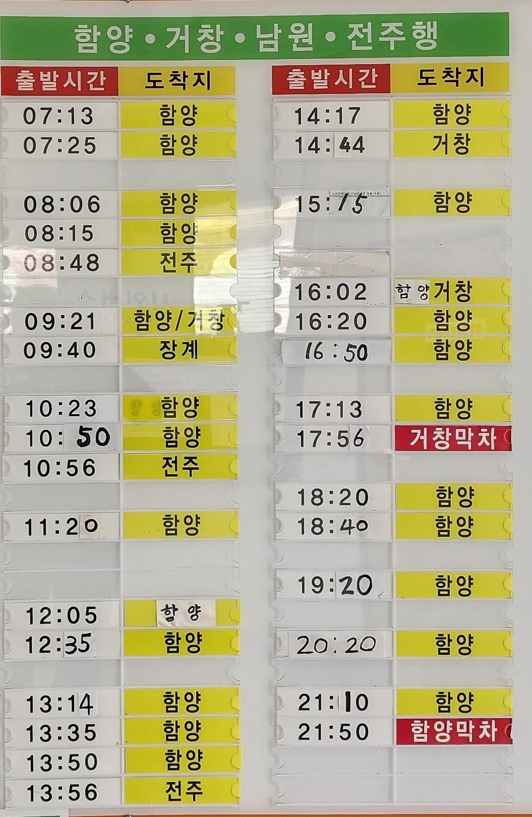 산청시외버스터미널 시간표 요금표 주차장 안내