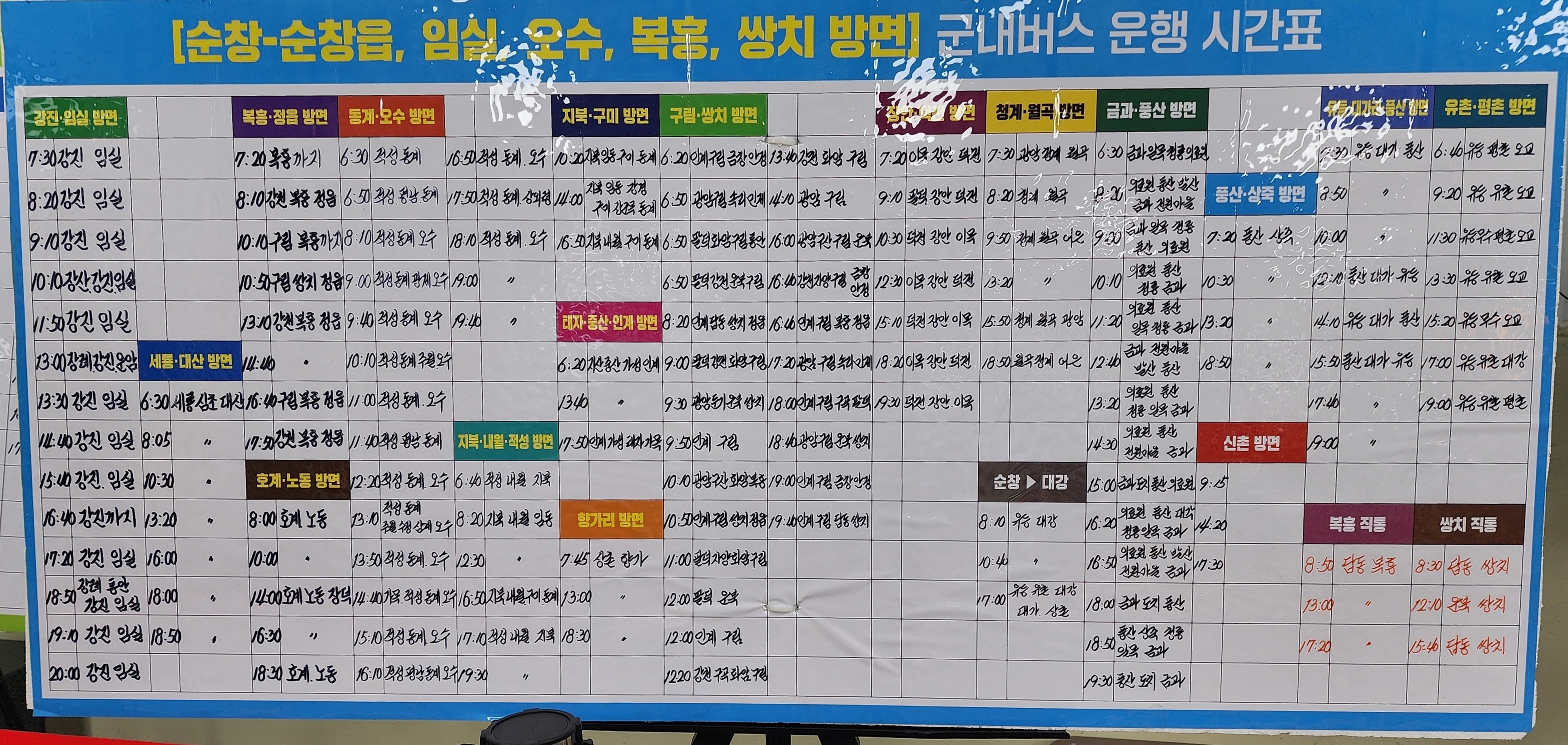 순창 출발 군내버스 시간표