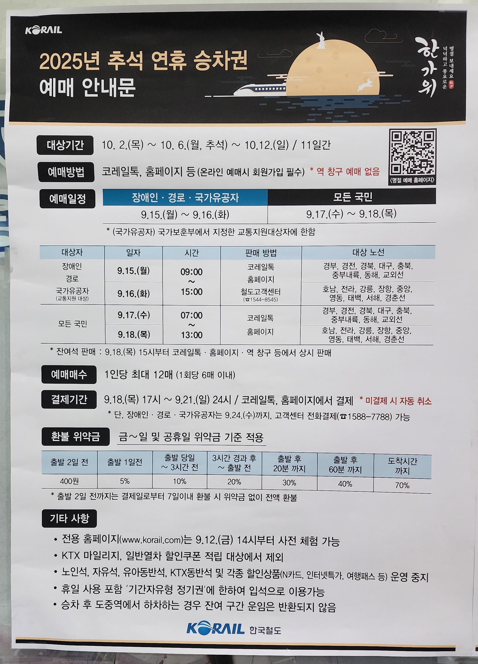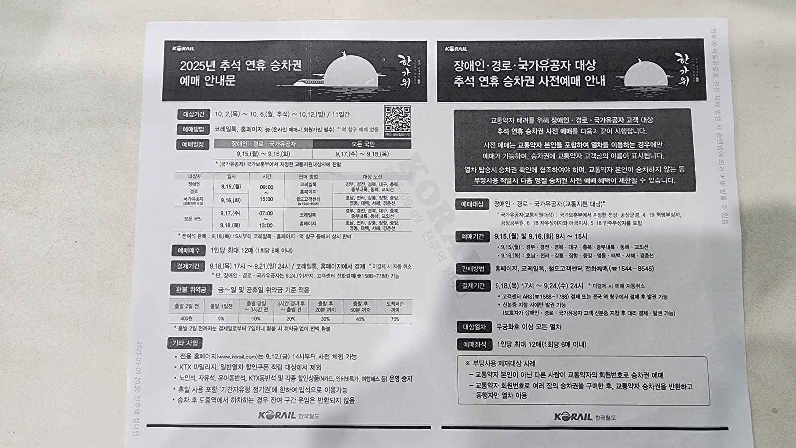 전주역 열차시간표 2025년 추석 연휴 승차권 예매 안내