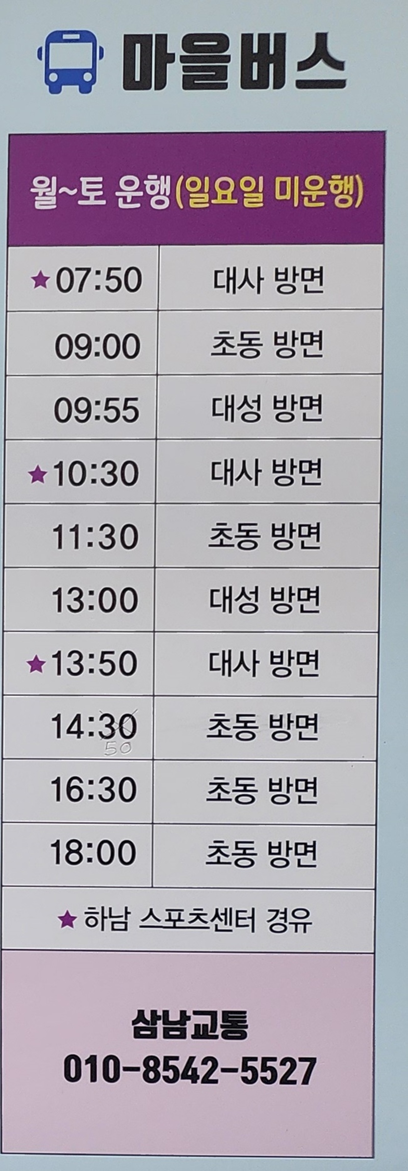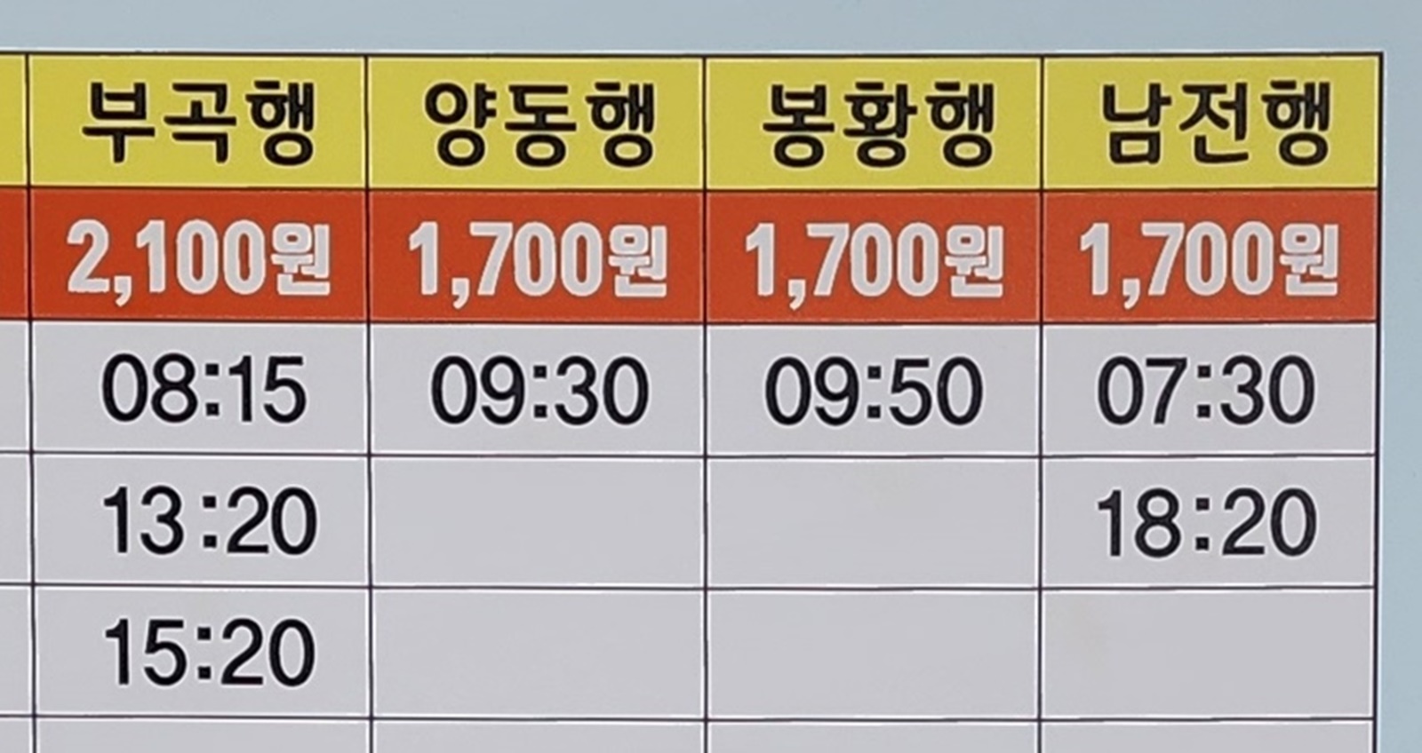 수산 출발 부곡, 양동, 봉황, 남전 방면.