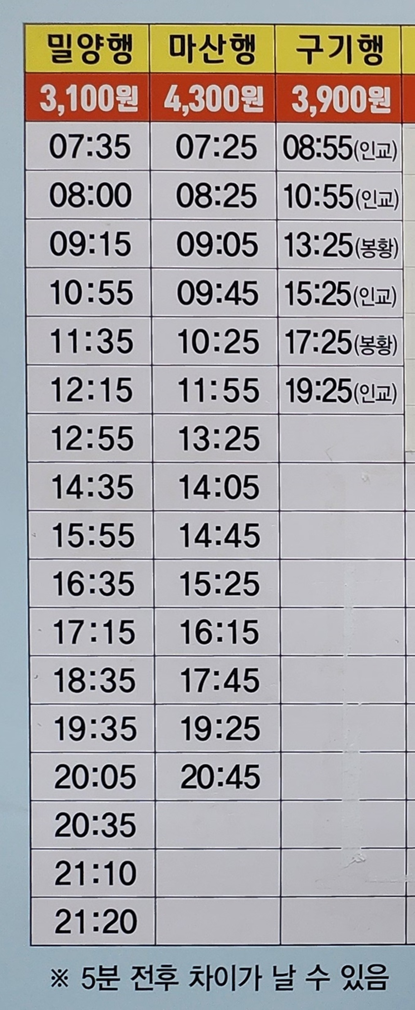 수산 시외버스 터미널 시간표 수산 버스정류장