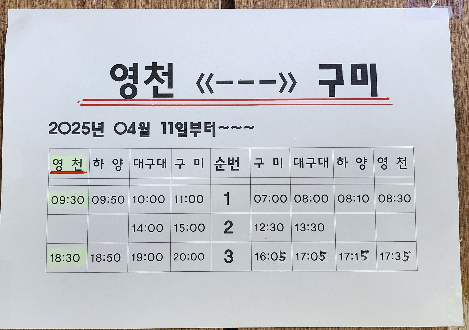 영천 시내버스터미널 시간표