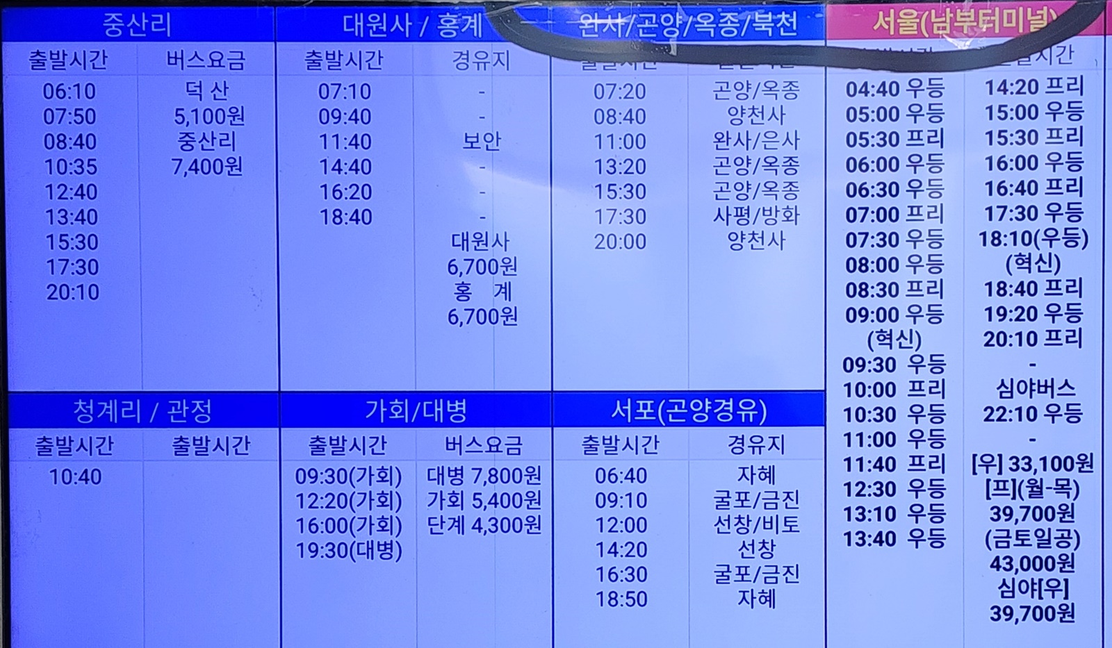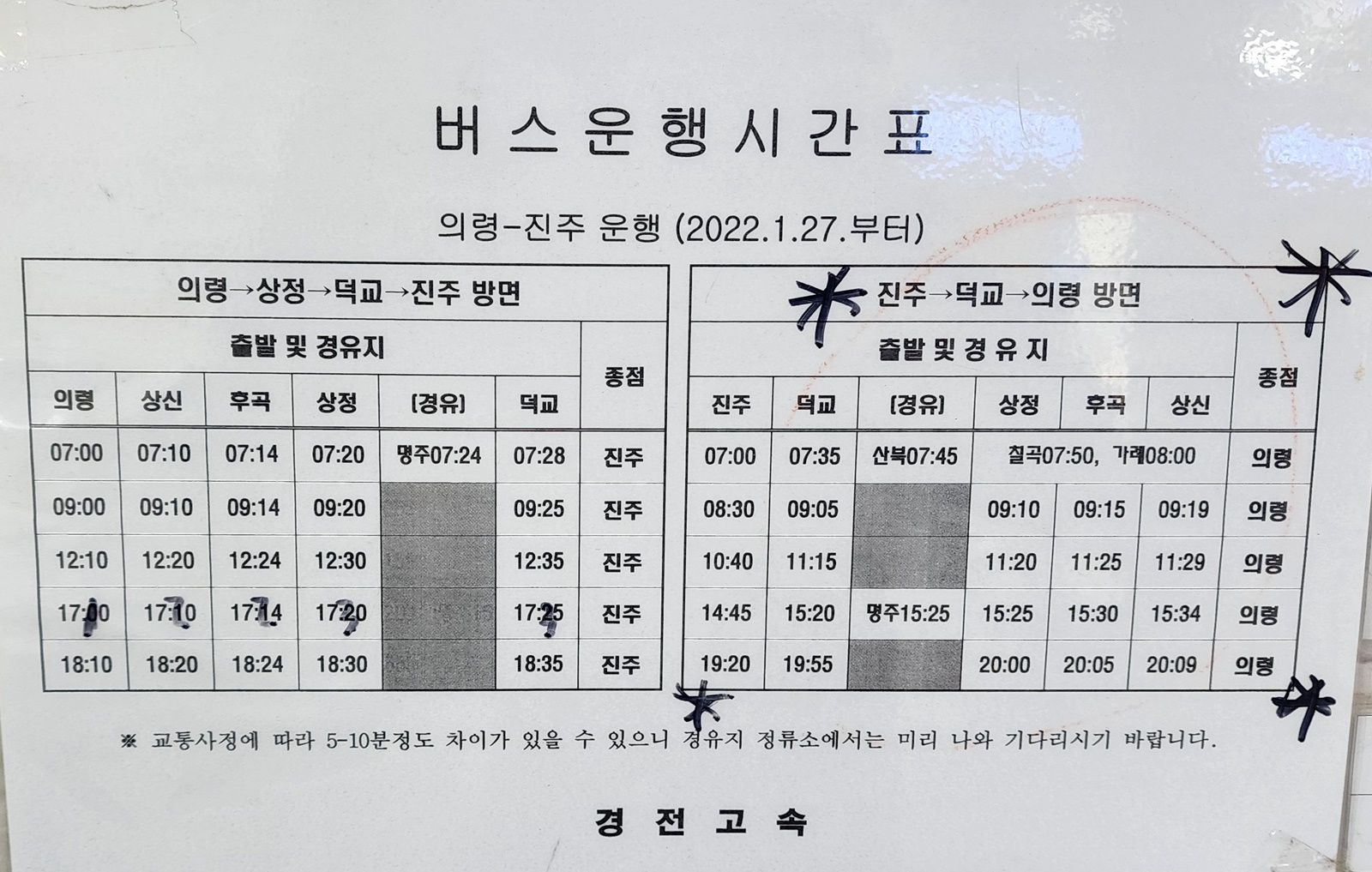 진주시외버스터미널 시간표
