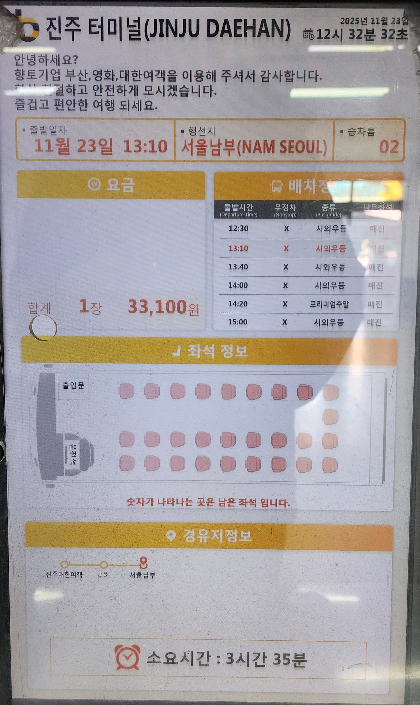 진주 출발 서울 남부 방면.