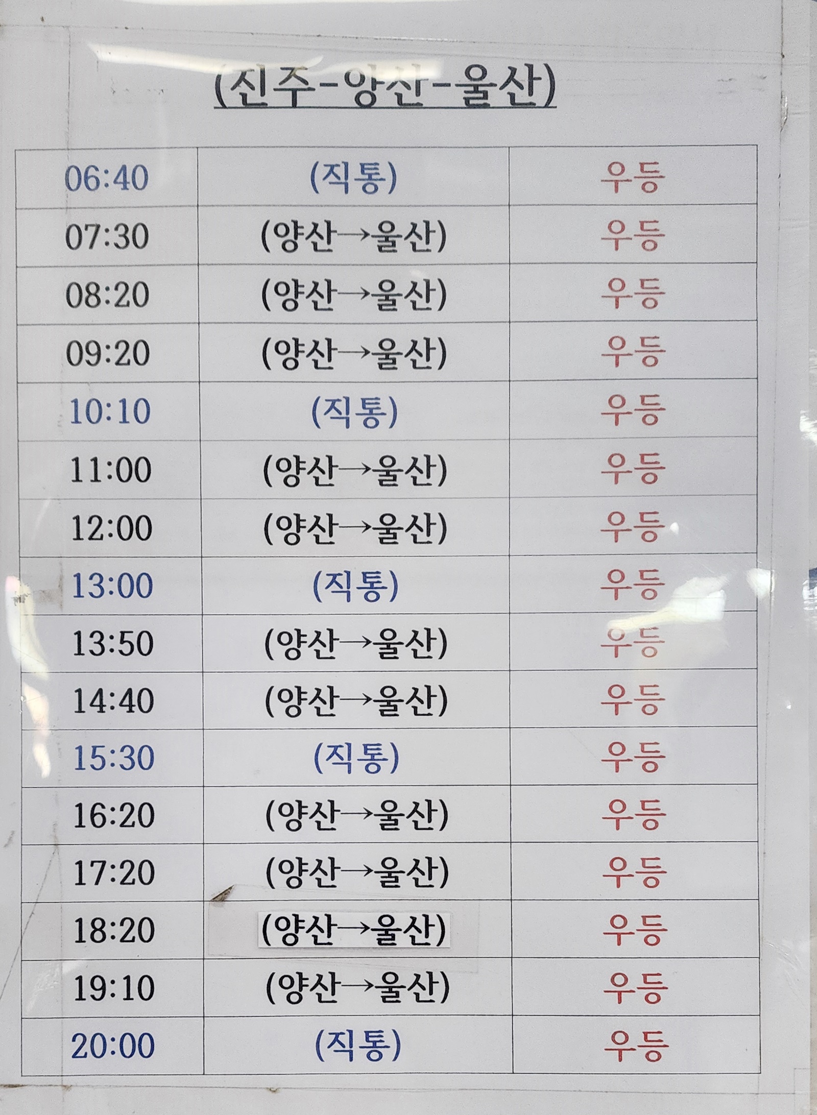 진주 출발 양산, 울산 방면.