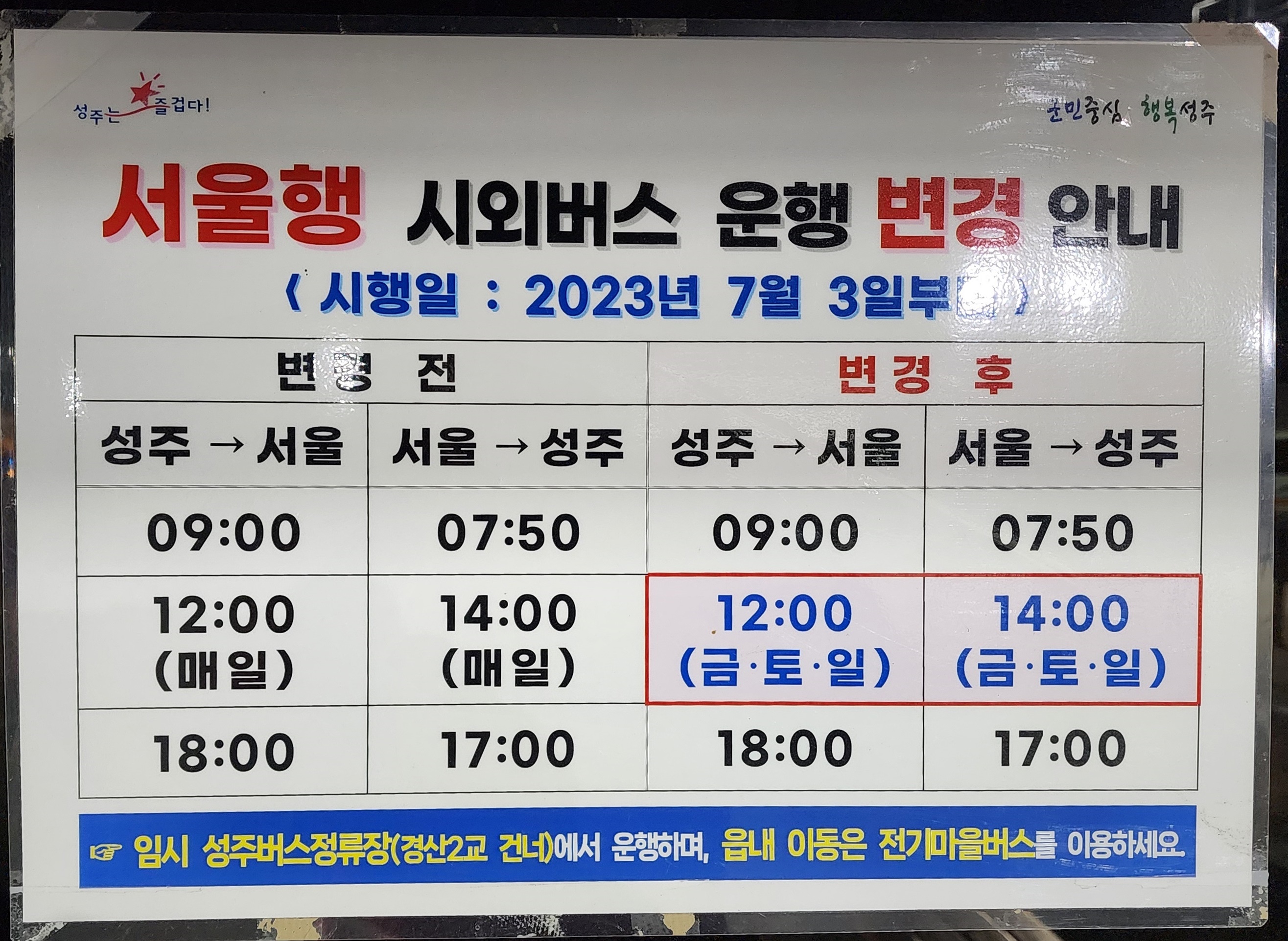| 서울남부 | 일 2~3회 운행 (노선별 경유지 확인 필수) |