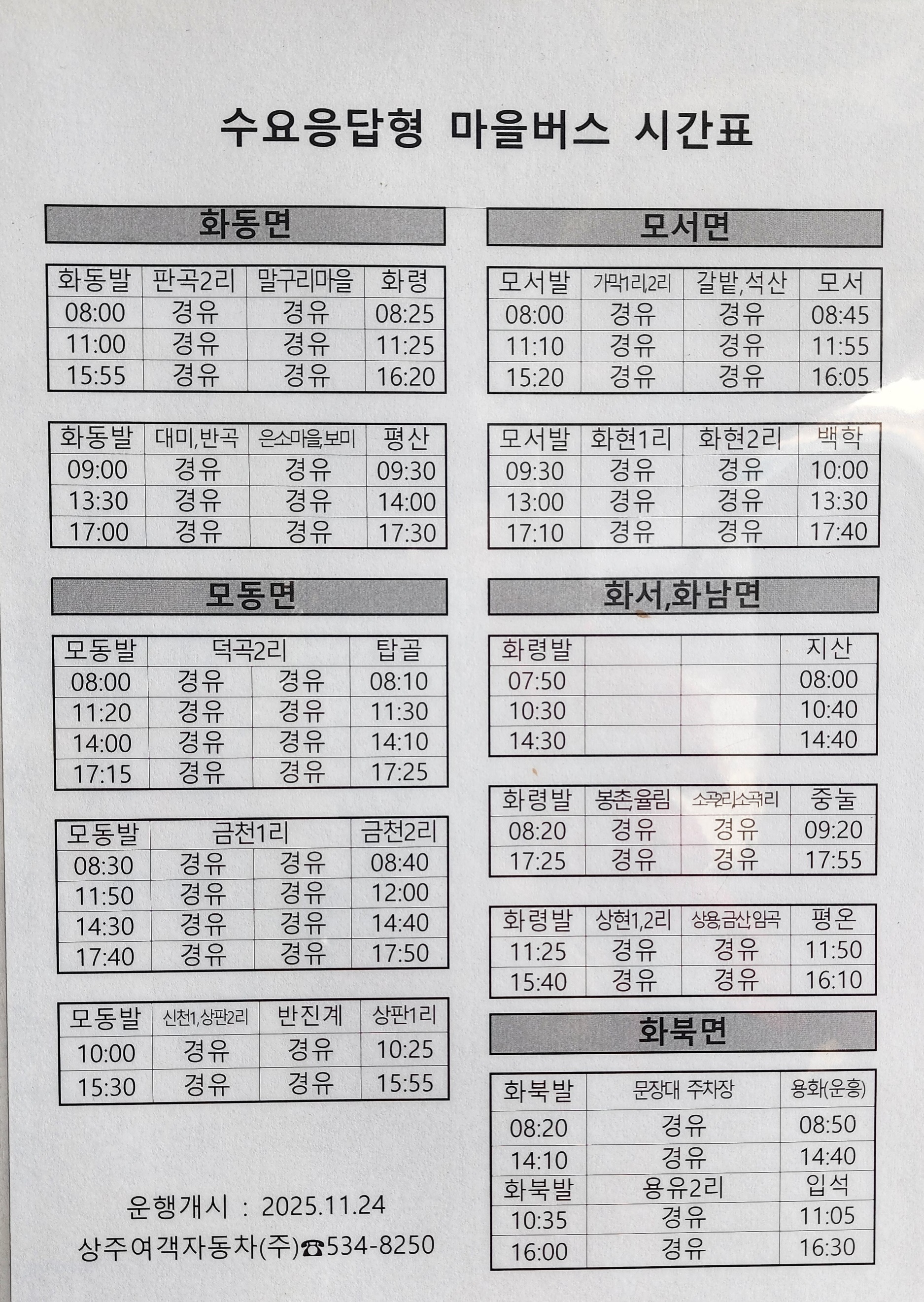 상주 출발 점촌, 안동, 충주, 울진 방면.