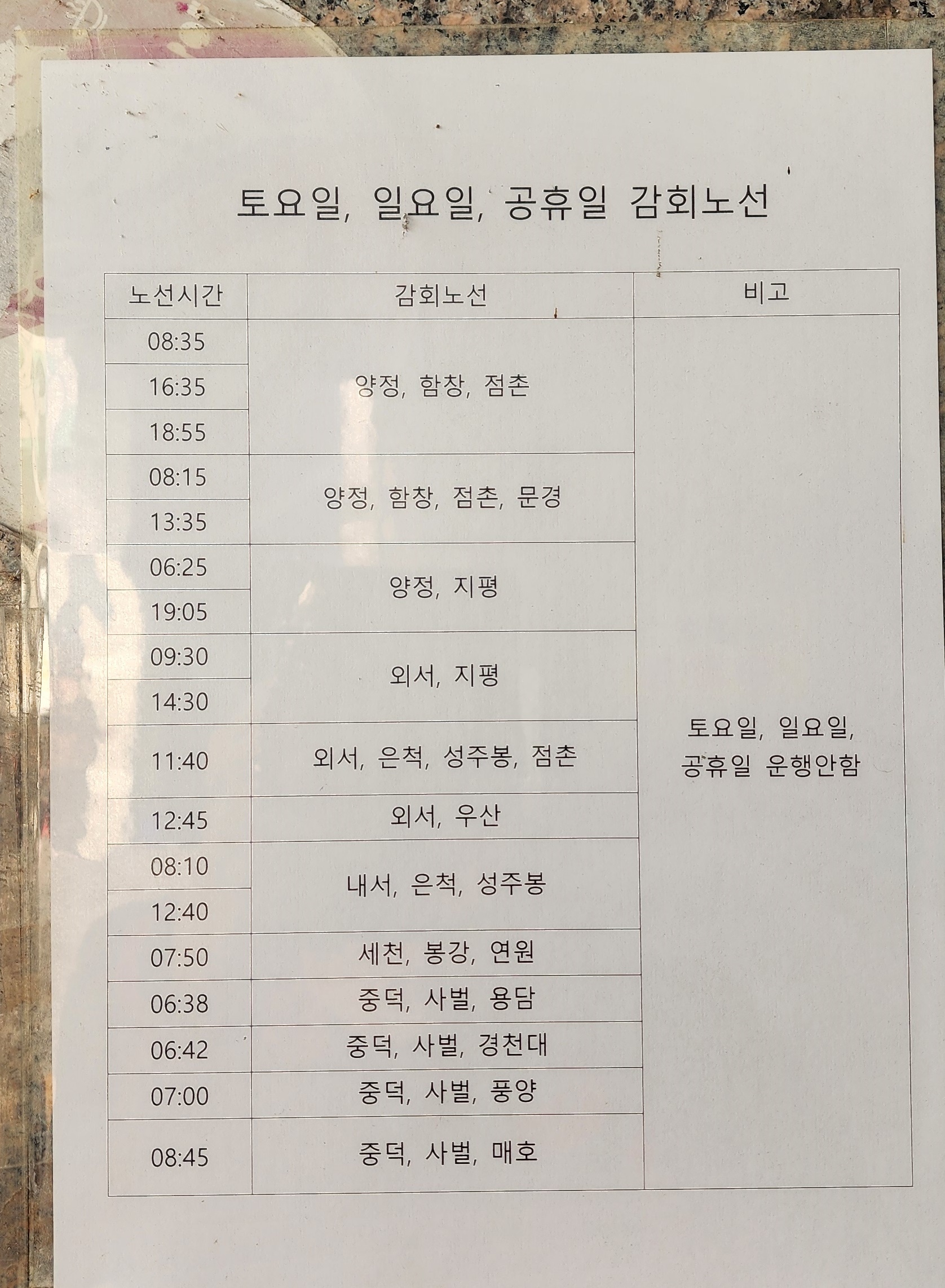 | 행선지 | 운행 특징 |