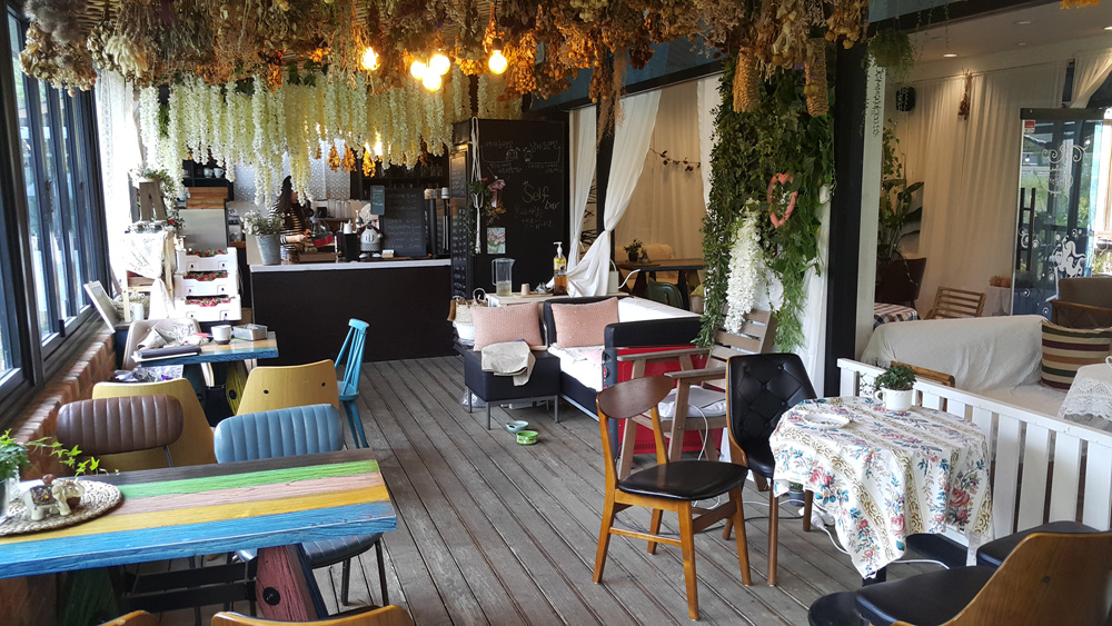 카페안을 온통 정원의 연장선으로 만들어 놓았어요