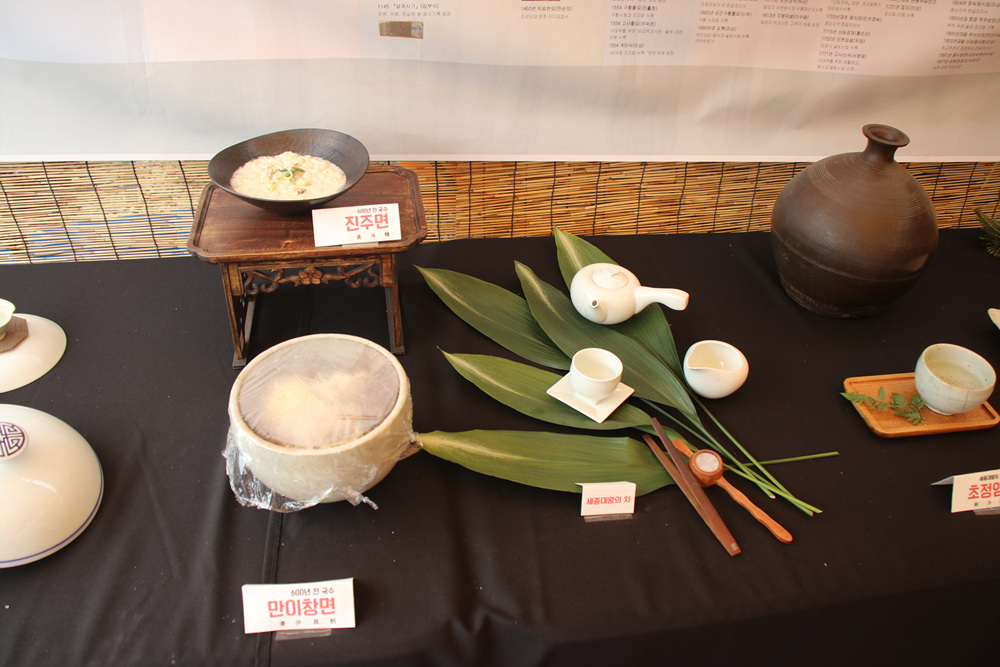 초정약수, 서여빵, 두시가 전시되어 있습니다.