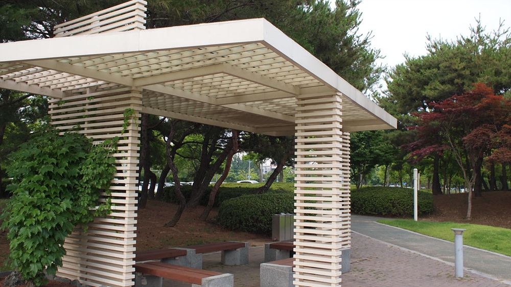 녹색공간 곳곳에 이러한 쉼터가 있어 정원을 거닐다 잠시 쉬기에도 편리합니다.