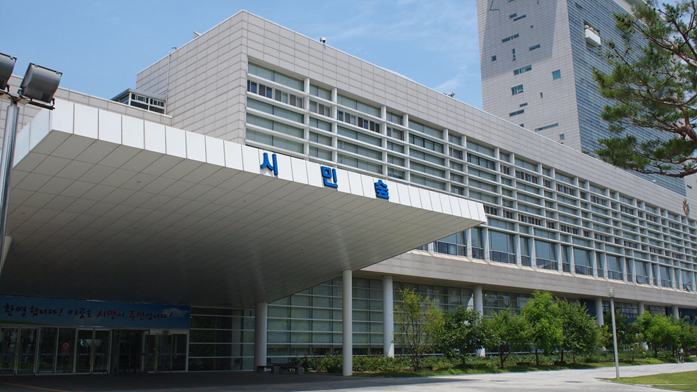 광주광역시청으로 들어서는 순간 넓은 녹색의 공간이 시선을 끌어당깁니다.