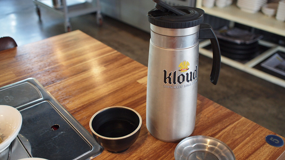 먼저 물을 가져다주시는데 일반 플라스틱 병이 아니라 스테인리스 용기에 시원한 물을 담아 손님에게 재어 줍니다.