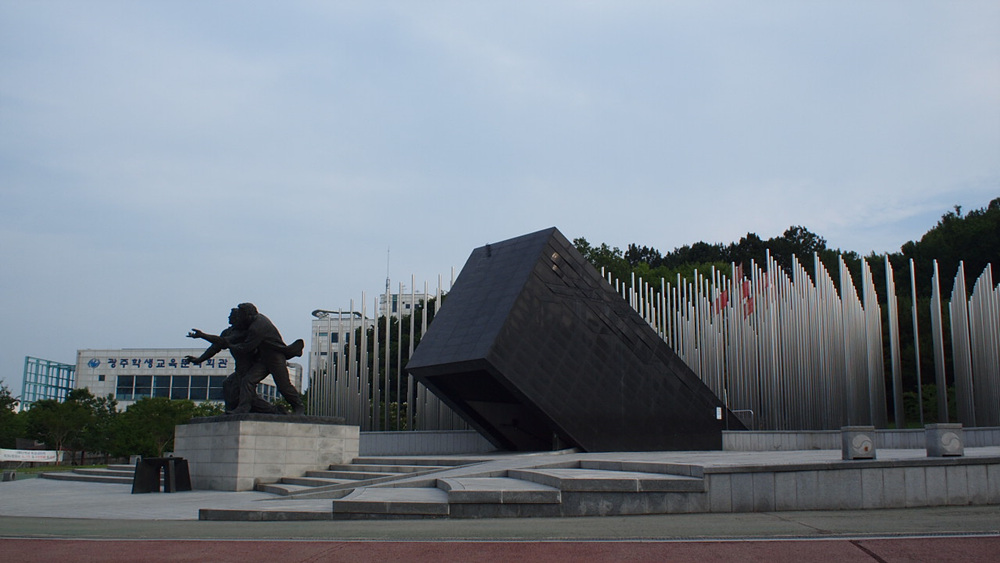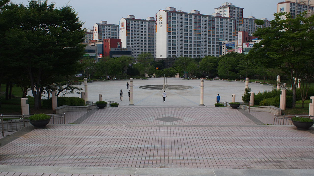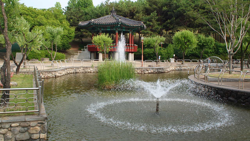 518 공원 입구에는 팔각정과 시원한 분수가 어우러져 시원함을 선물하고 있습니다.