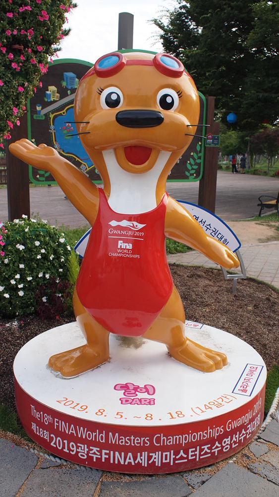 제18회 2019 광주 FINA 세계마스터즈 수영 선수권대회 2019.8.5.~8.18.(14일간) 마스코트 달이의 모습입니다.
