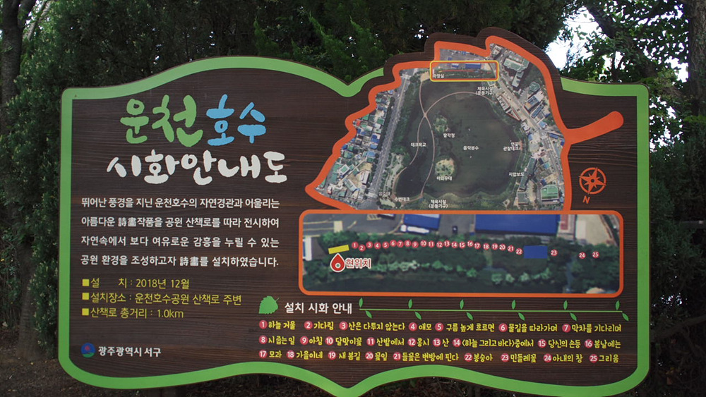 운천호수 시화 안내도를 설치 시화가 25점입니다.