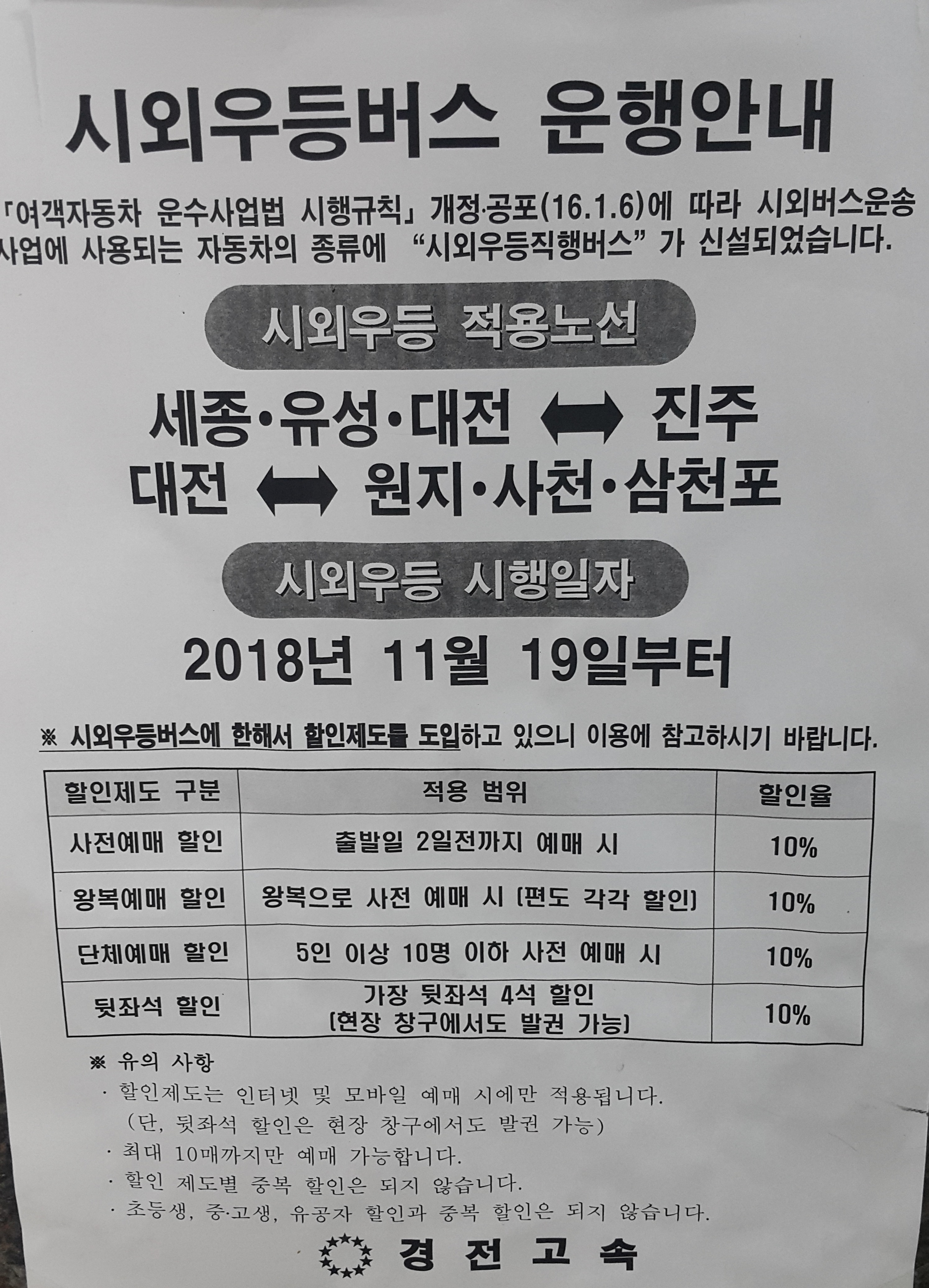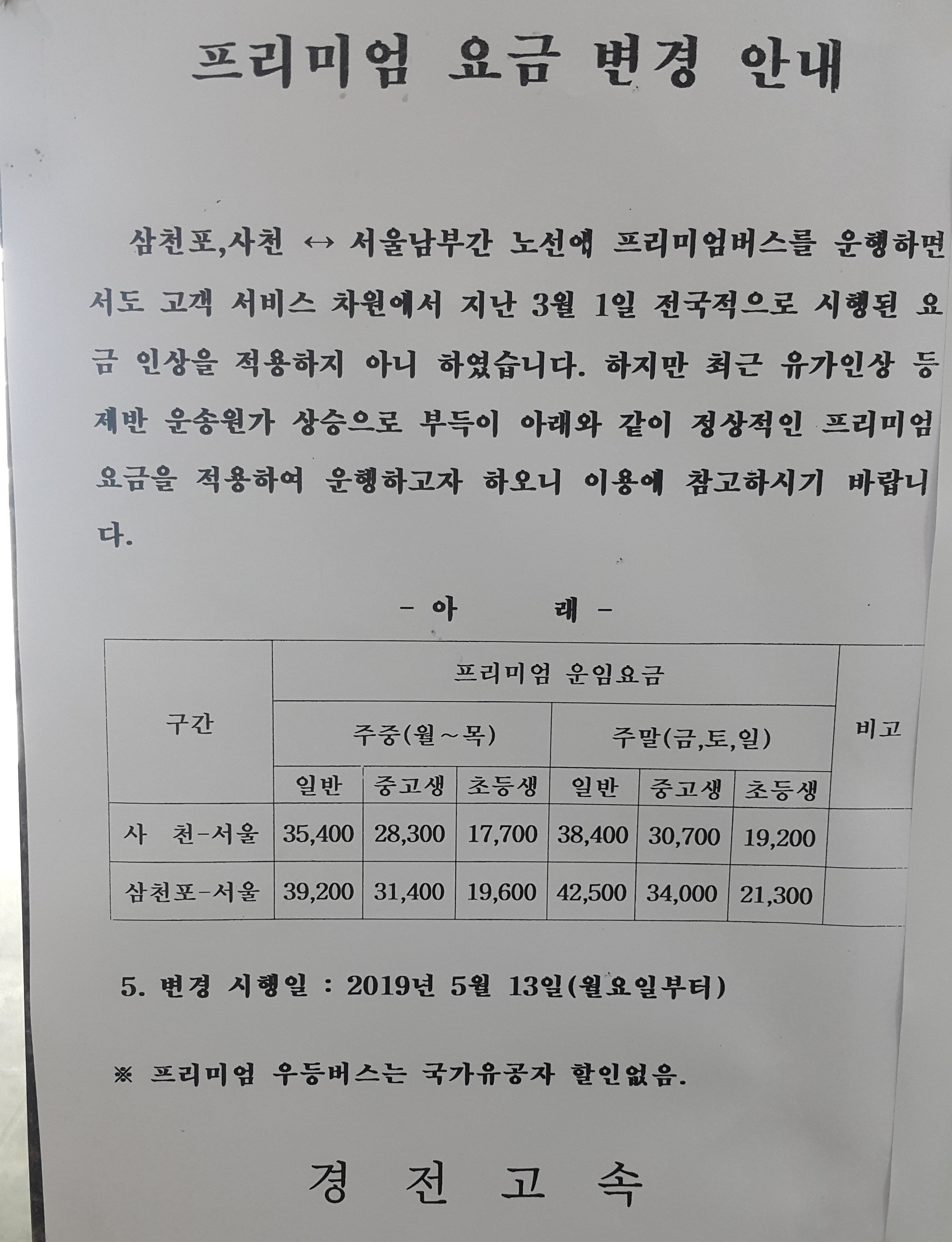 서울남부행 요일별 시간표 2019.7.1.(월)시행.