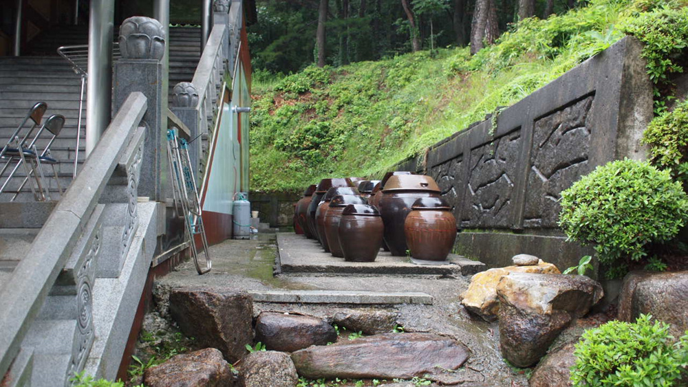 우측 계단 으로는 길 아래에는 장독대가 놓여 있는데