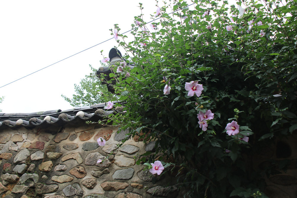 장성 고산서원 담벼락에 있는 무궁화 꽃이 오늘따라 더욱 아름답게 보입니다.