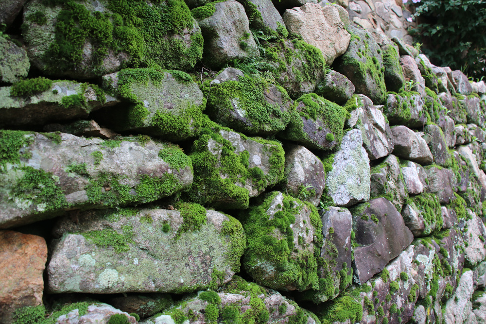 장성 고산서원의 기단석은 푸른 이끼가 가득합니다.