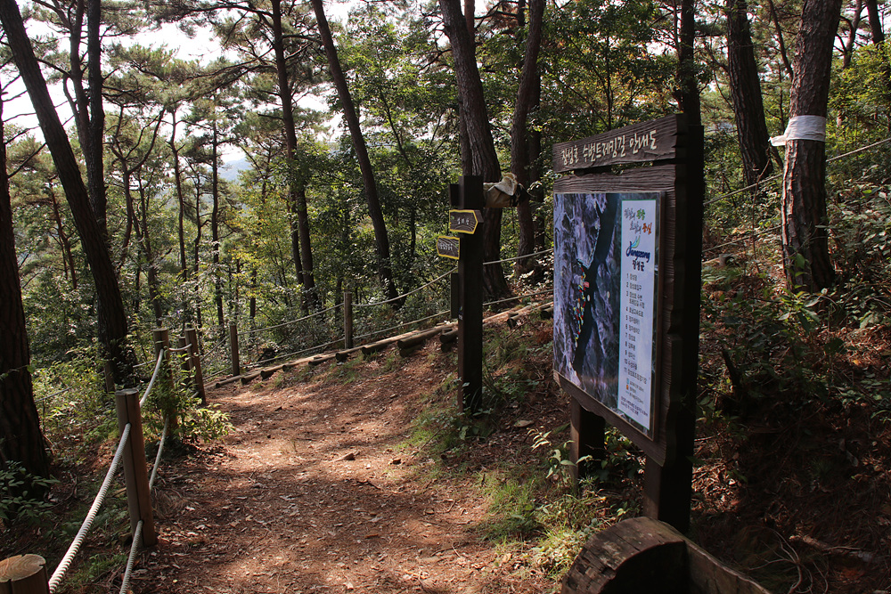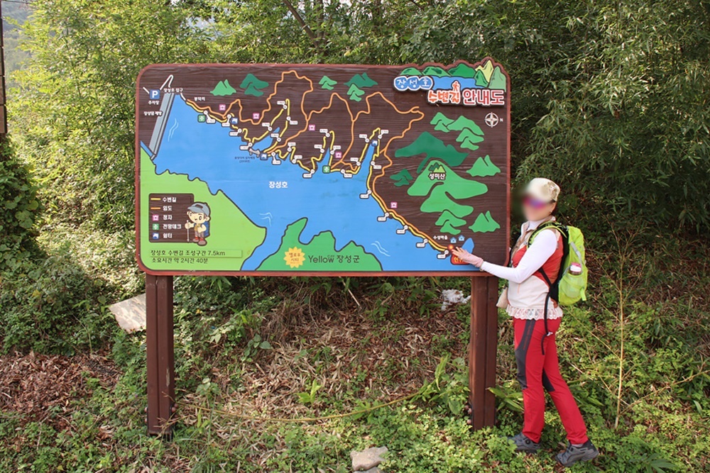 장성호 수변 출렁다리 2구간 설치공사로 수변길의 통행이 통제되어 중간즈음에는 등산길로 접어들어야 길을 계속 진행할 수 있습니다.