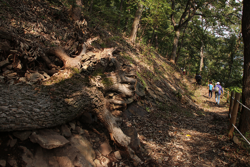 쓰러진 고목옆으로 다시 도보를 시작합니다.