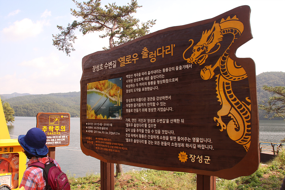 안내문에는 장성호 수변길 옐로우 출렁다리
