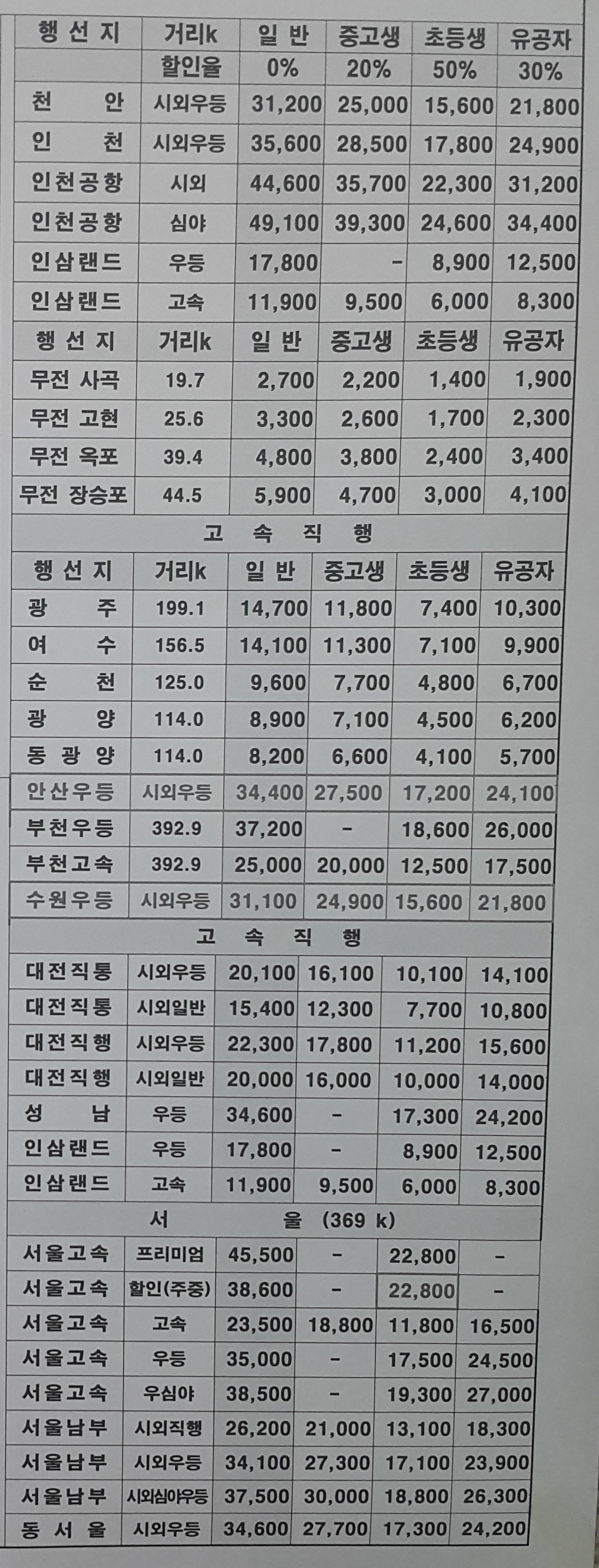 통영시외버스터미널 출발 인천, 인천공항,수원, 안산,부천, 성남, 분당, 방면