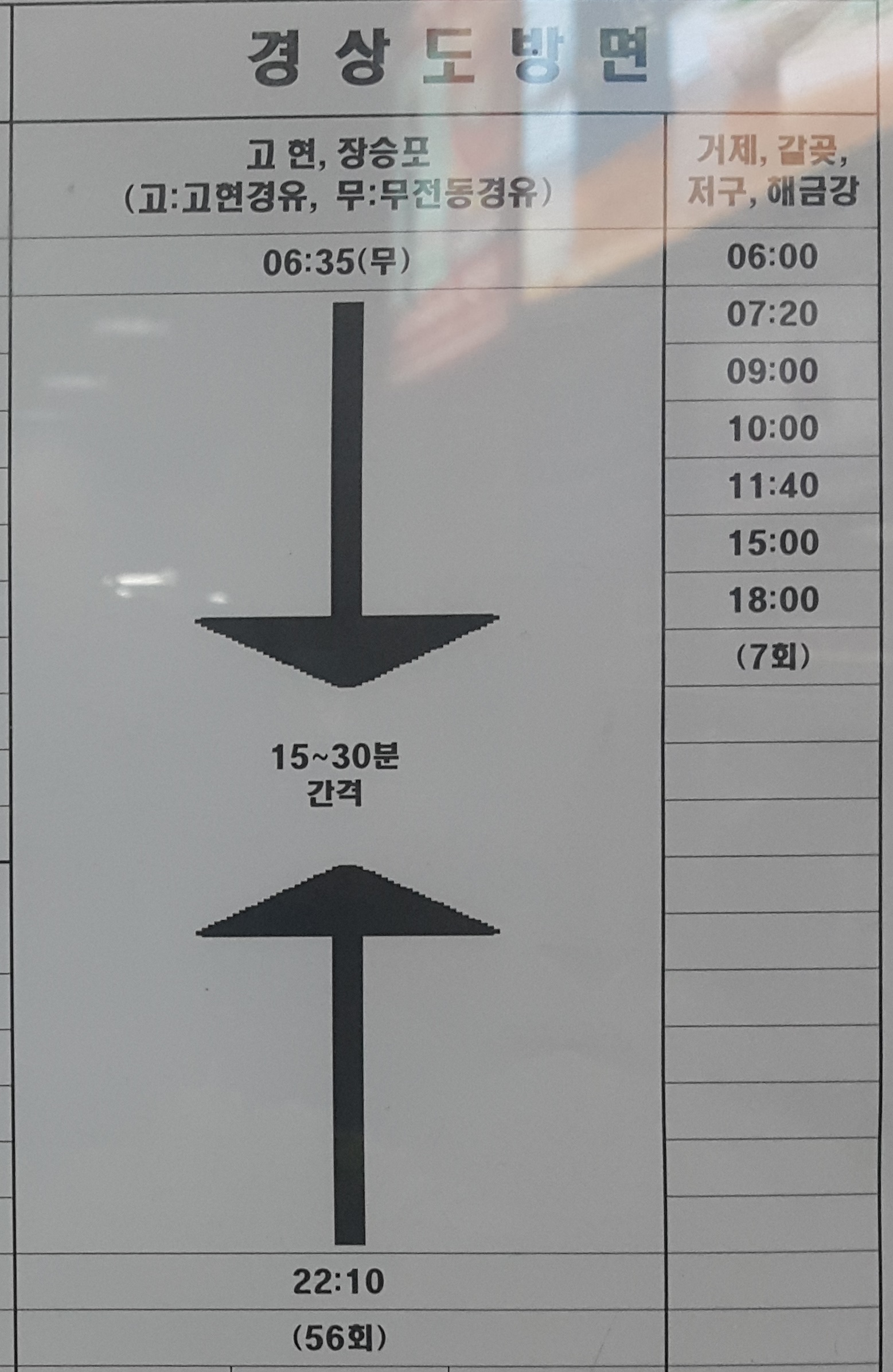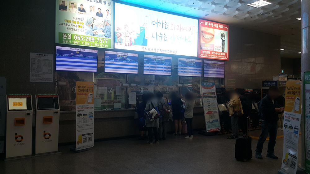 통영시외버스터미널 출발 창원, 마산남부, 고성, 배둔, 진동, 김해, 장유, 김해공항 방면