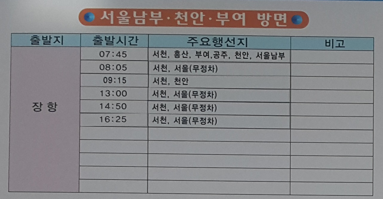 장항시외버스터미널 시간표 충남 서천 장항버스정류소