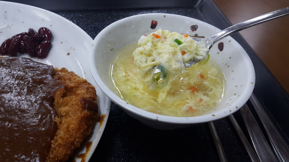 돈가스에 나오는 수프 대신 계란국을 내어주네요